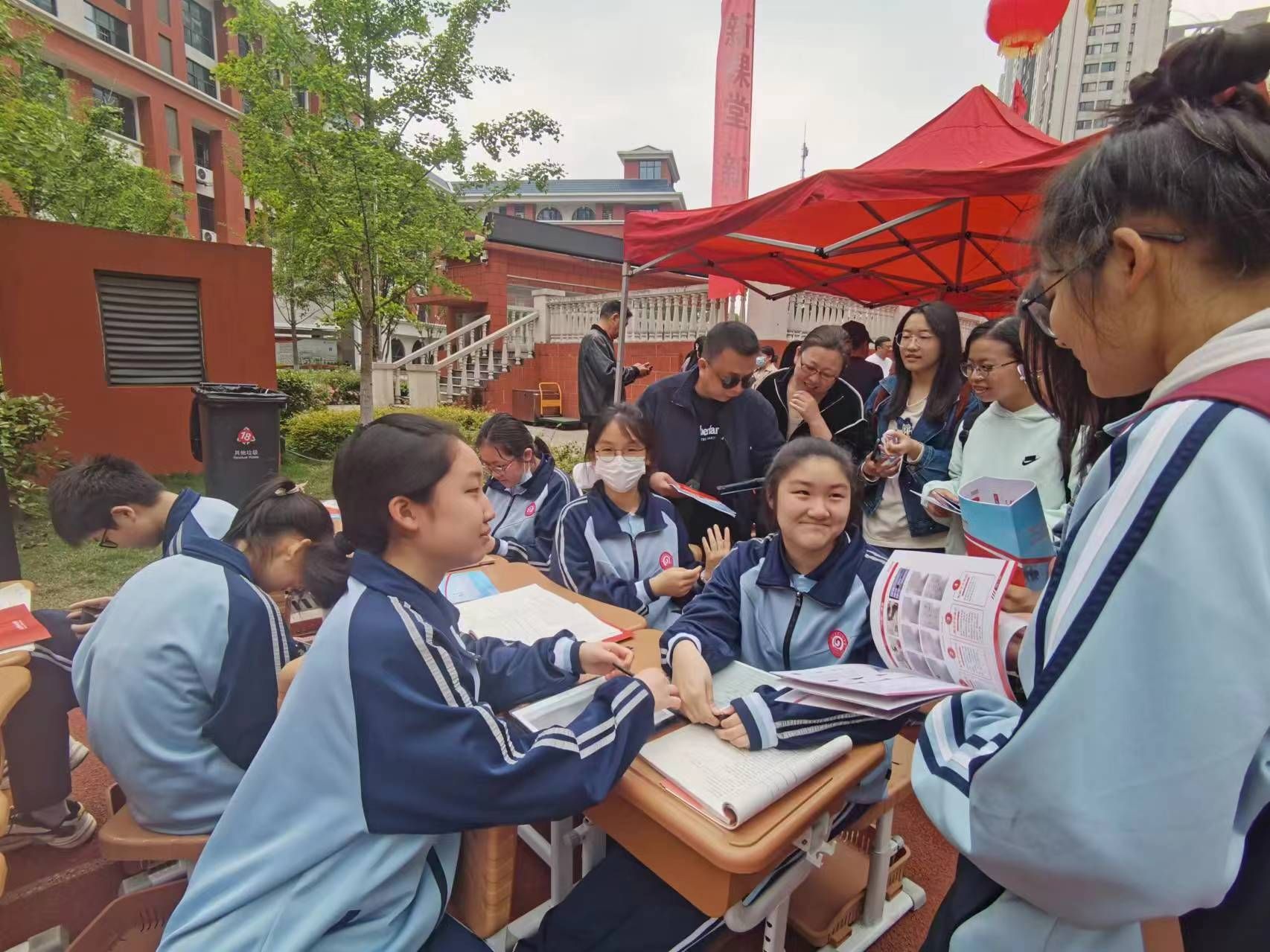 长江日报大武汉客户端5月1日讯 5月1日,武汉市中招咨询会举行,江汉区会场设在武汉市第十九中学。各高中阶段学校招生老师在咨询点位上回答考生、家长提问,现场提供志愿填报指导。