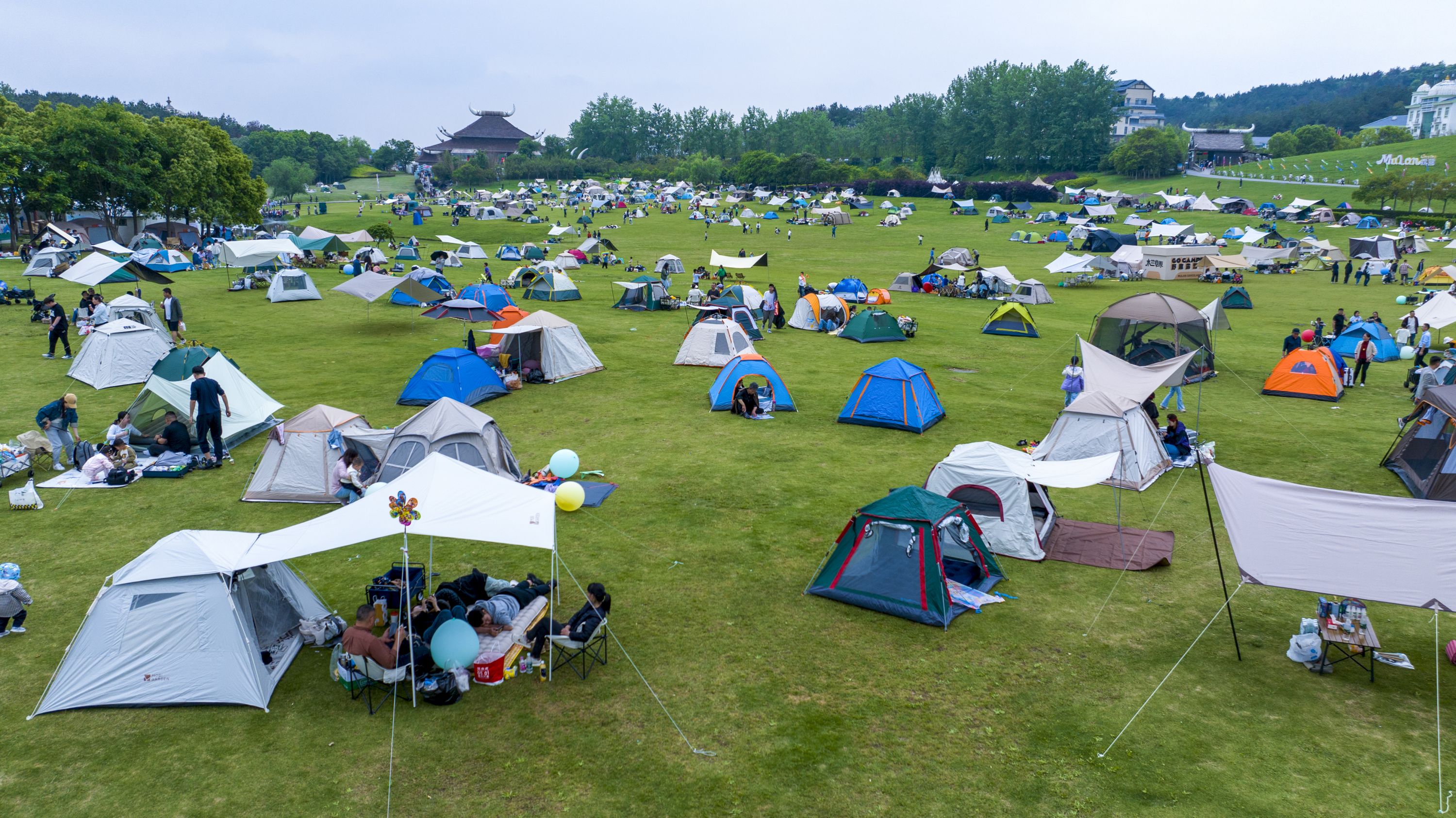黄陂木兰花乡相关负责人介绍,景区5万平方米的草坪区域露营点位供不应求。截至下午6时,木兰花乡(木兰不夜城)、木兰草原分别吸引2.86万人次、2.66万人次打卡。