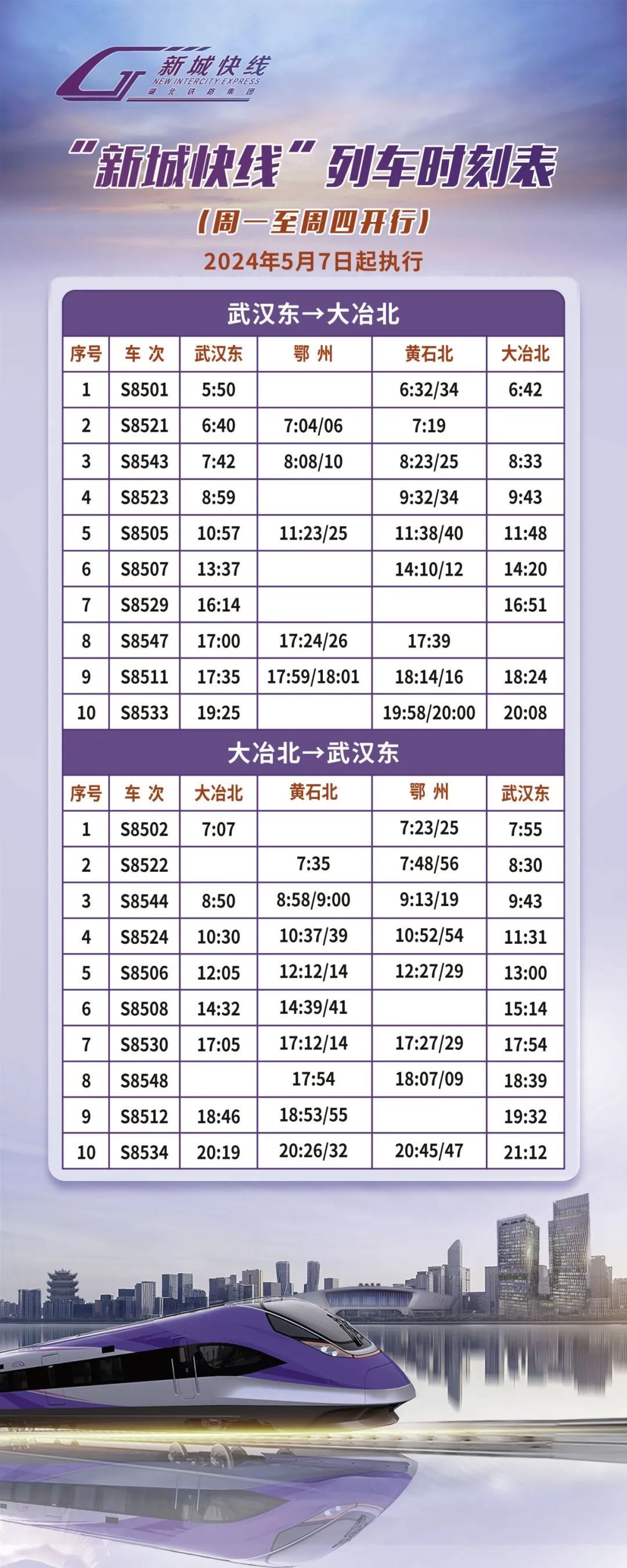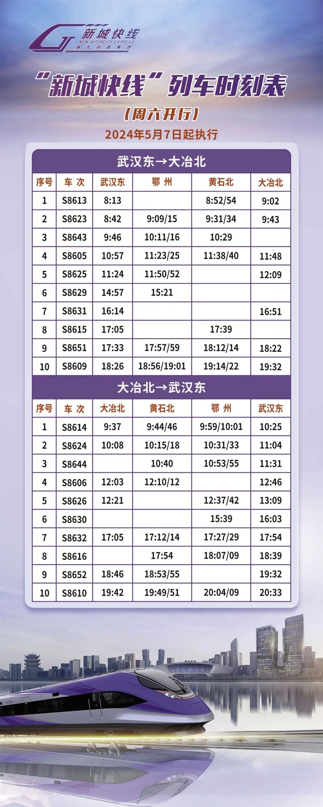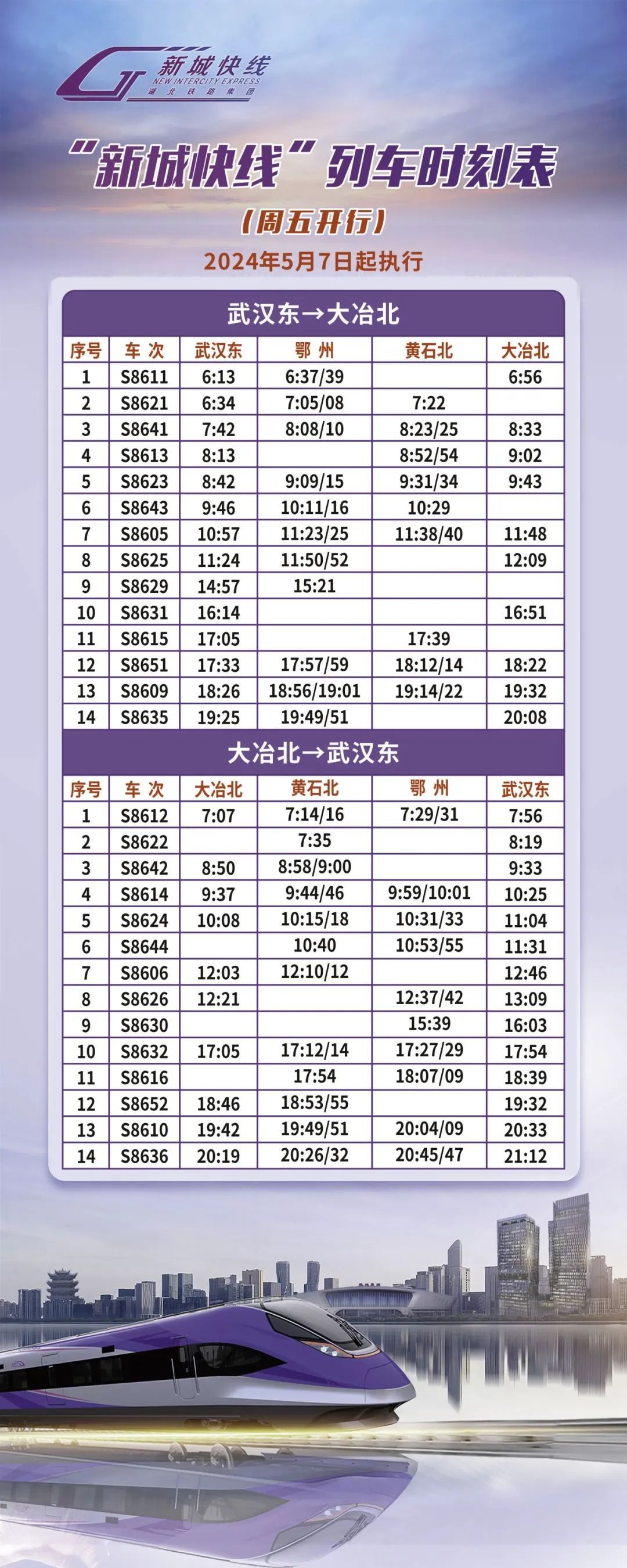 “新城快线”列车时刻表