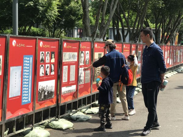 “五一”当日,由武汉中共中央机关旧址纪念馆主办的“红色记忆——中共中央在武汉”专题展送进景区,在武汉著名的东湖听涛景区长天楼前展出,全天吸引了近万名观众驻足参观。