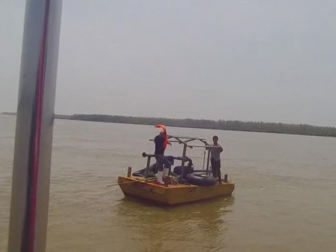 无动力船舶漂浮在江中。 通讯员伍子玥 摄