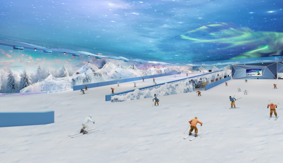 湖北文旅·武汉冰雪中心室内滑雪场效果图。