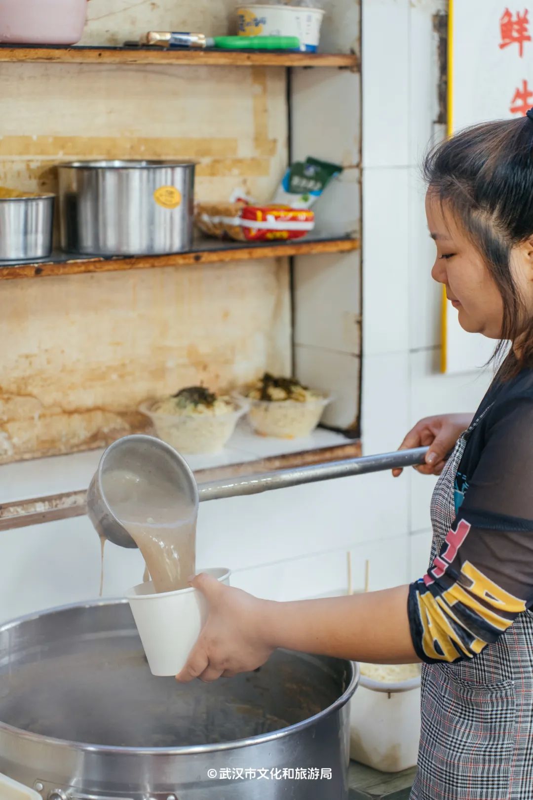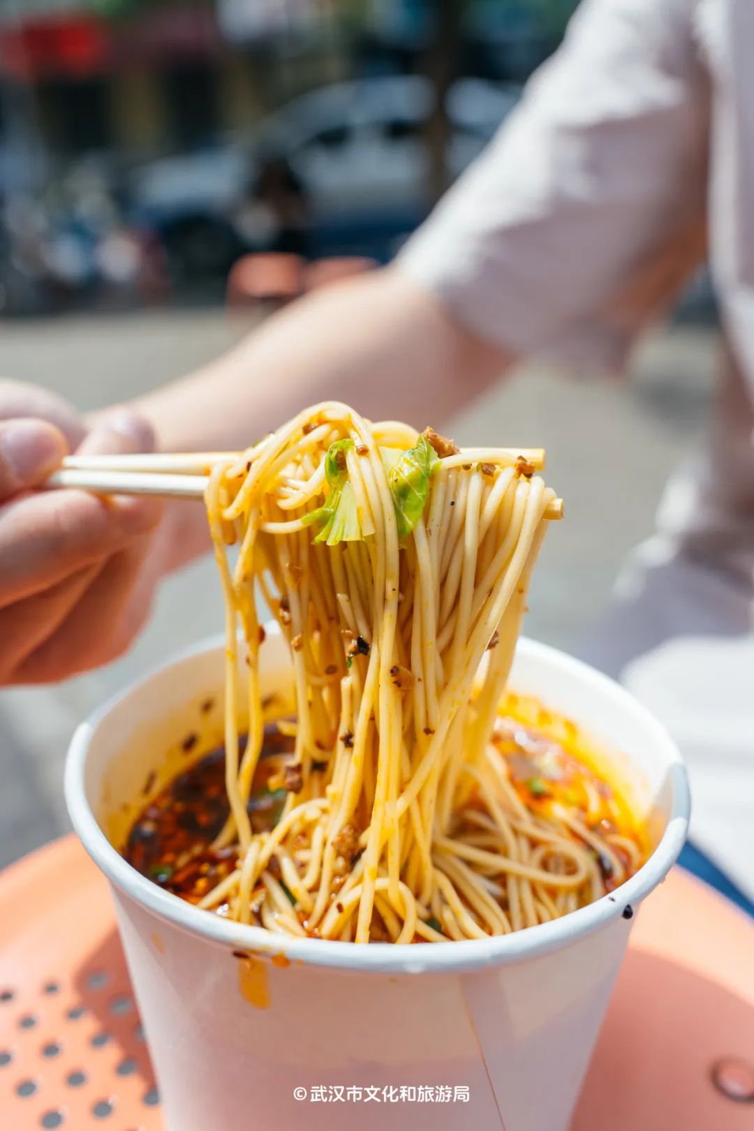 老板娘手起勺落,面条稳稳当当入碗,加上自家做的红油辣椒,鲜、香、麻、辣,和以前在重庆吃到过的完全一致,6块钱一碗,扎实又实惠,极其符合武汉人对过早的定位。