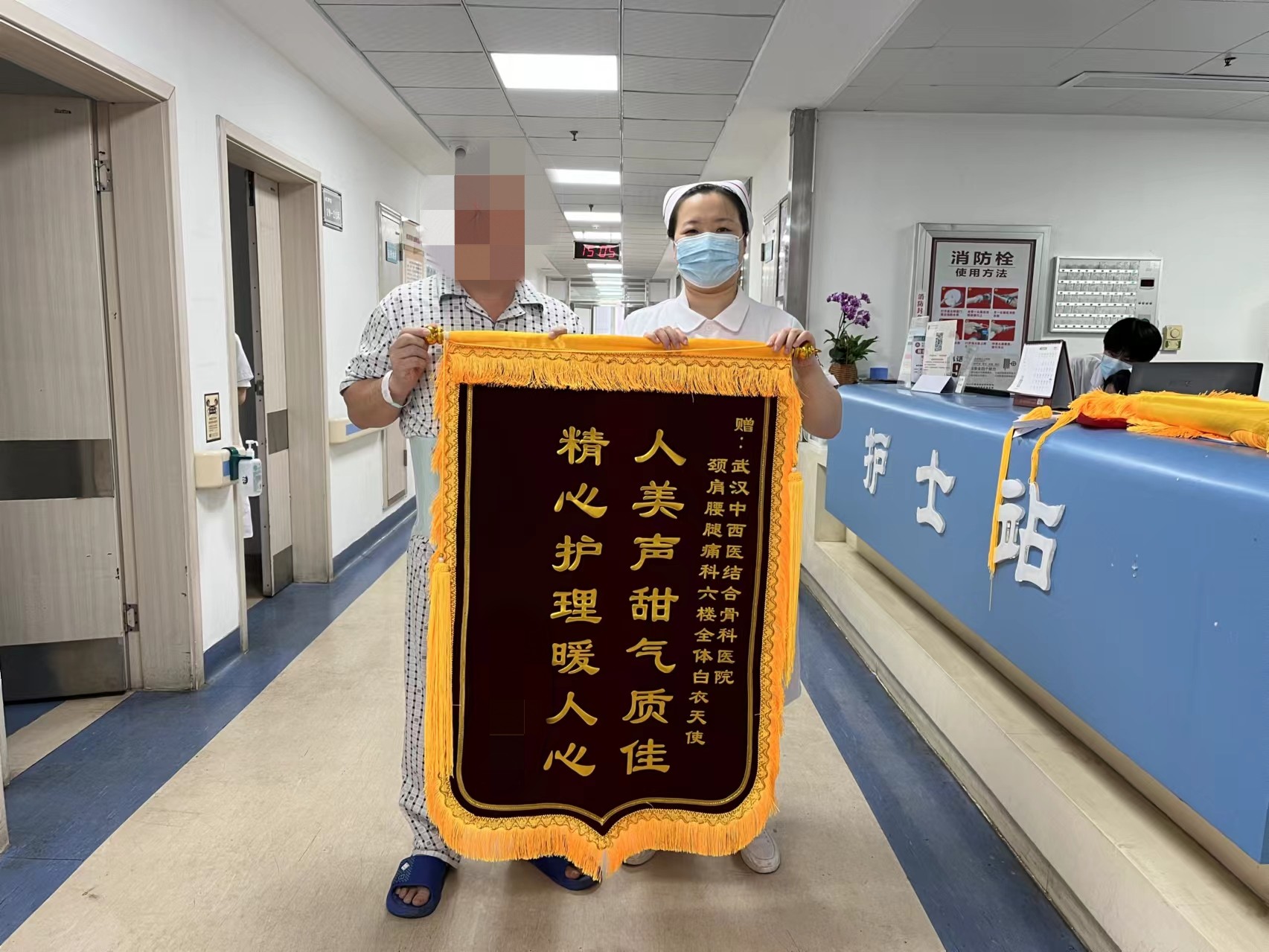 出院后不久,李师傅在家属的陪同下,亲自来到医院,为沈荣和护理团队送上了一面锦旗和鲜花,以表达他们深深的感激之情。