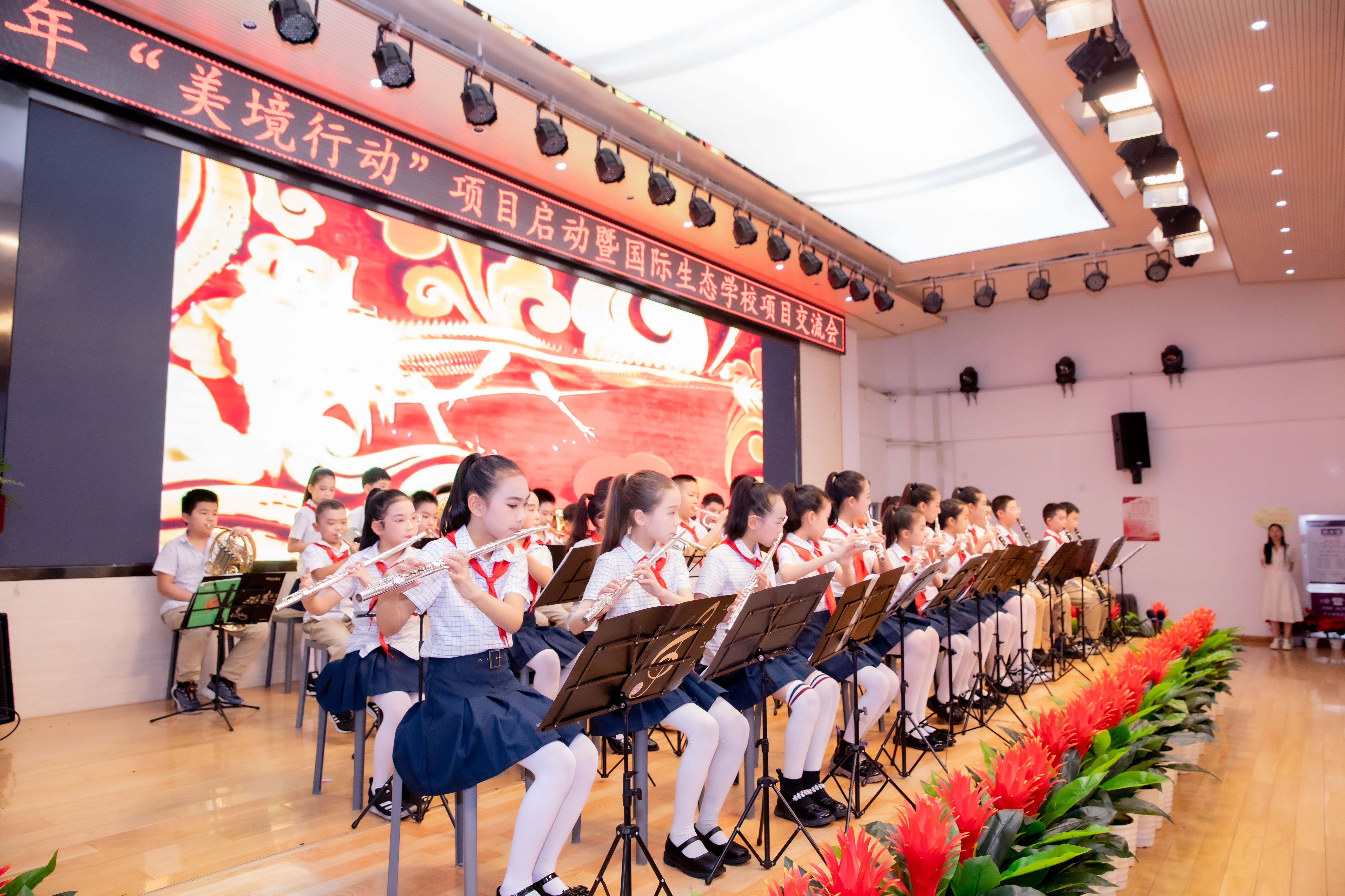当天,来自武汉华侨城小学的学生们身穿整齐的校服,佩戴着鲜艳的红领巾,用可爱俏皮的舞蹈、热情活泼的管乐表演、生动有趣的“三句半”等丰富多彩的演出,迎接参观团的到来,传递出热爱大自然、保护地球、保护家园的生态环保理念。
