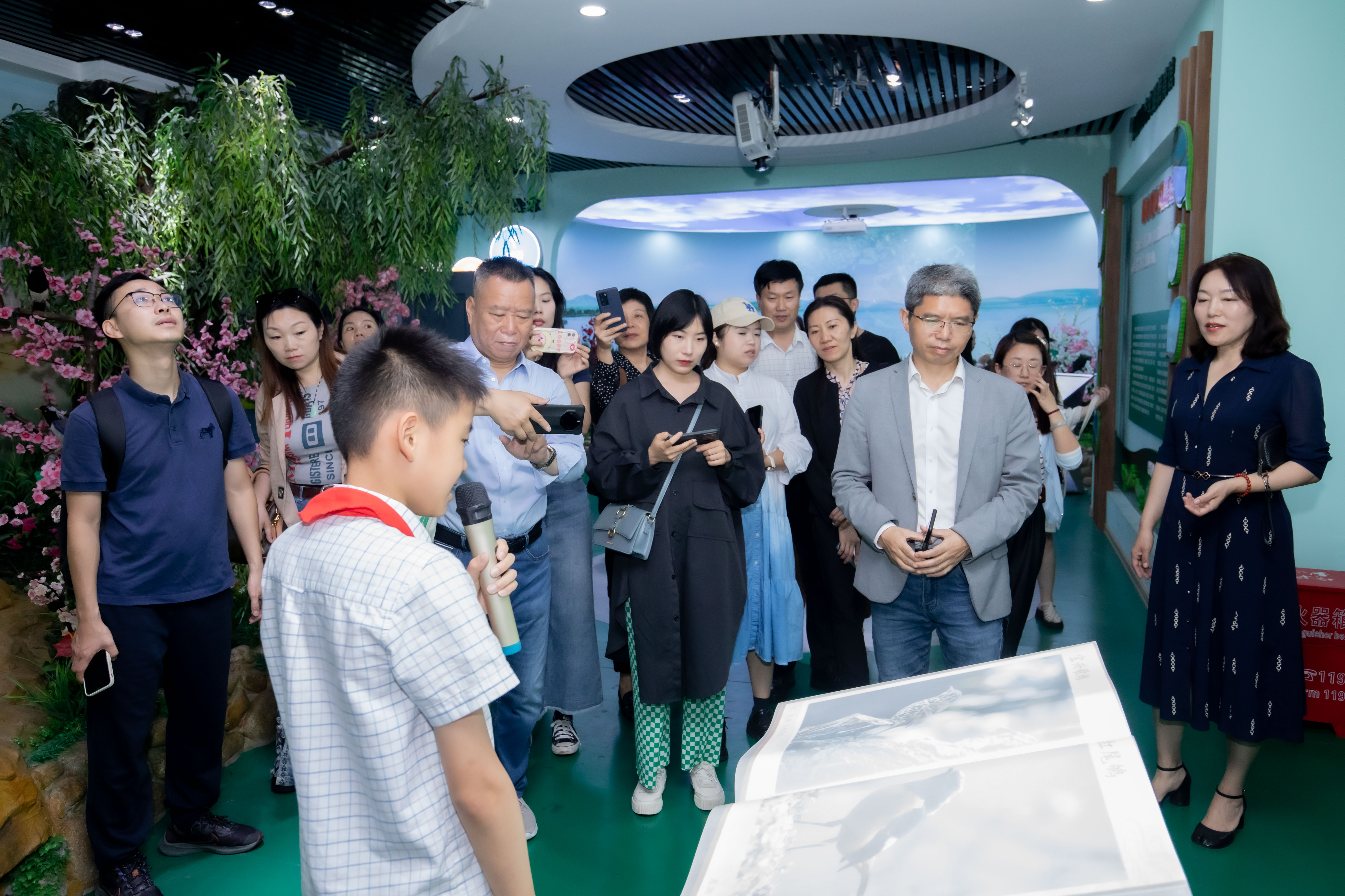 在参观过程中,校内东湖生态文明教育馆获得了参观团的一致好评。记者在现场看到,栩栩如生的东湖微缩景观尽收眼底,学生们通过投影、电子沙盘、虚拟翻书、多媒体触摸屏、水质监测仪器等互动装置做实验,“上天入地”游历东湖。