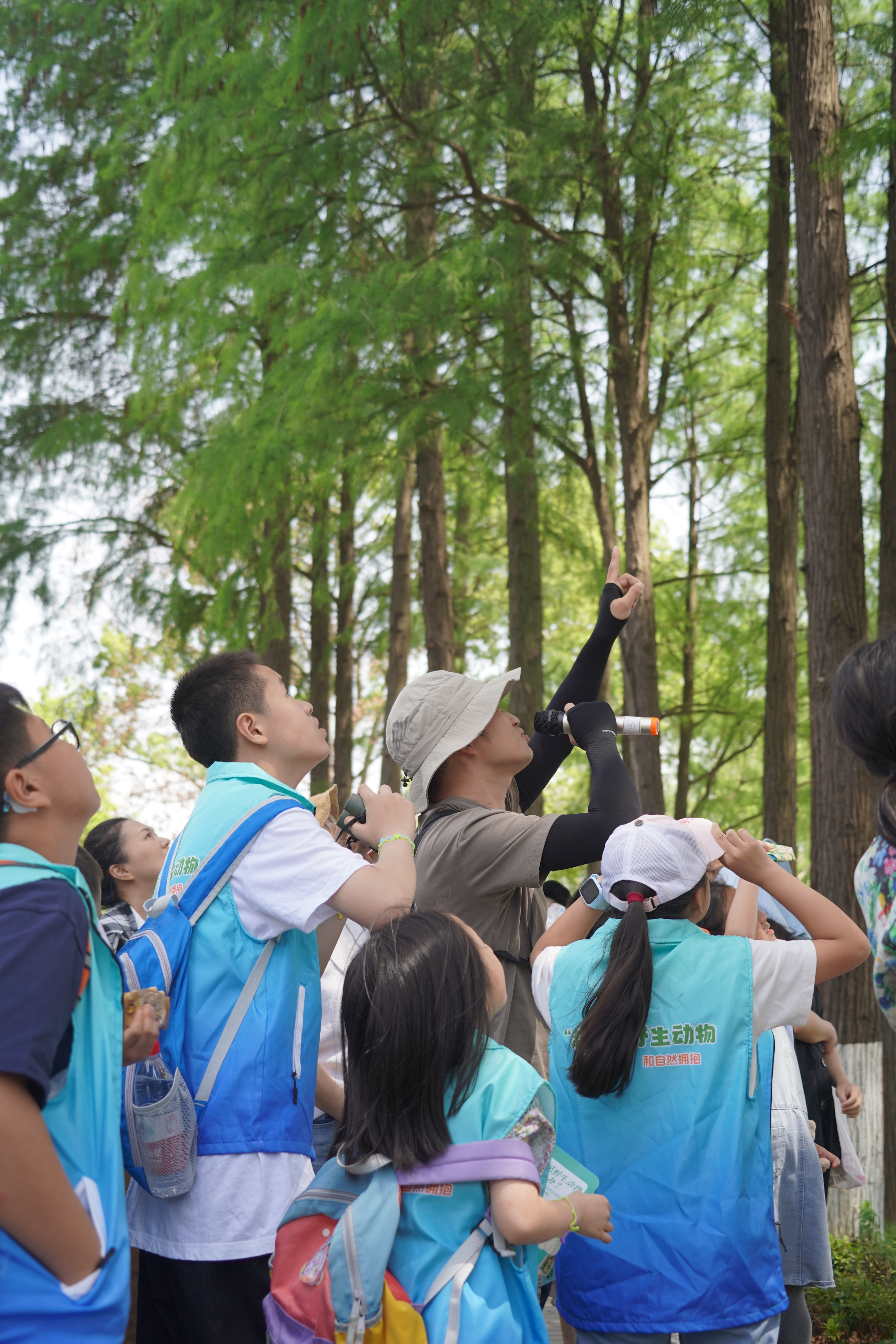 黑水鸡妈妈在教宝宝如何进食、夜鹭在空中盘旋、灰喜鹊在高树上筑巢......科普导师汤飞、吴世武、李伟和郭维康带领大家拿着望远镜、沿着动物园湿地鸟区步道观察不同鸟类的自然行为。来自武汉六中致诚中学的殷子豪表示,平时最爱看《鸟类图鉴》,今天看到了书上的鸟儿,感觉就像好朋友一样亲切。