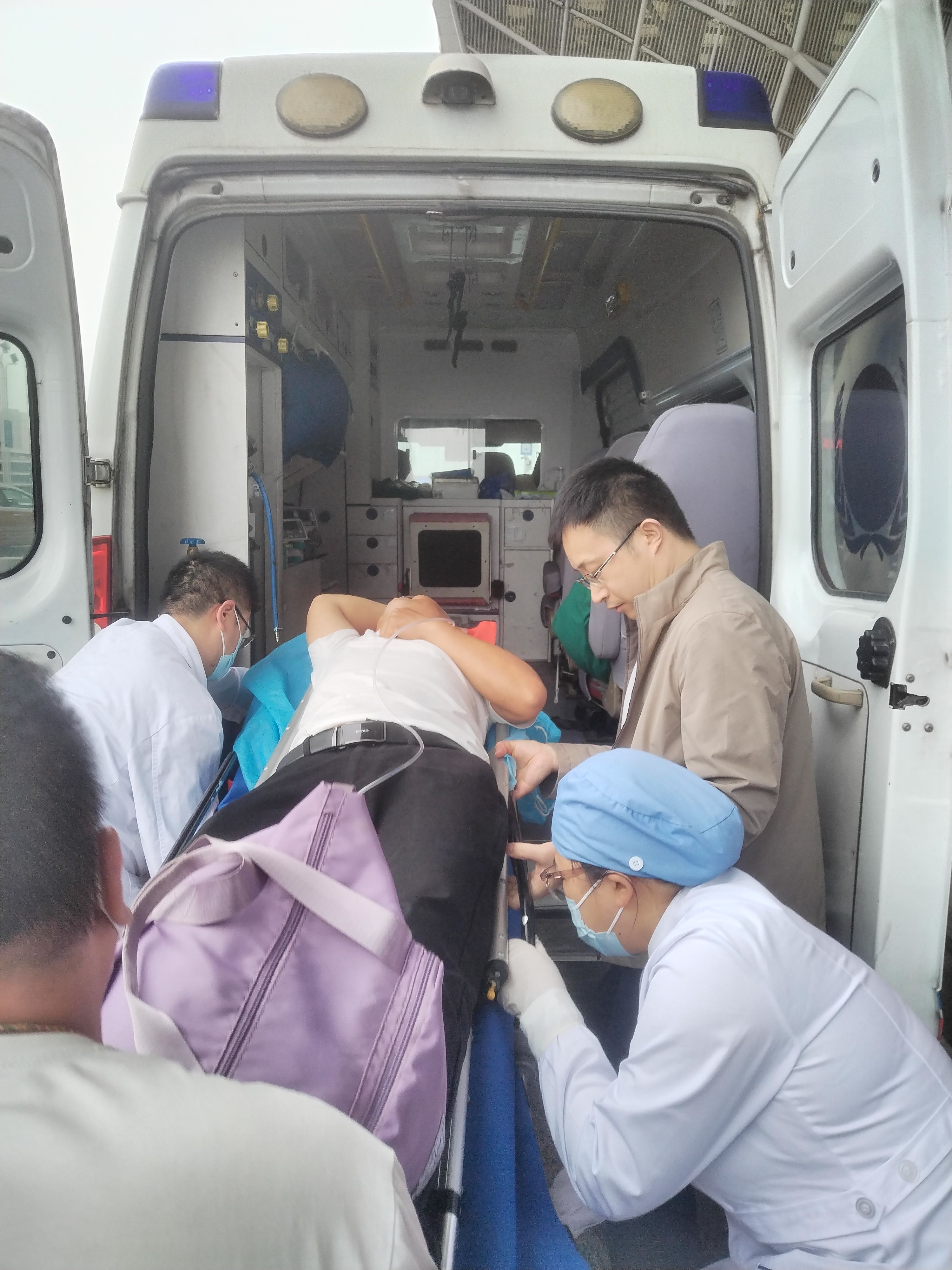 16时39分,高铁抵达武汉站,在铁路部门的大力协助下,武汉大学人民医院救护车也已在站台等候。余伟民与急诊科同事一起,将患者担架接上救护车,向医院飞驰而去,并在车上立即采取药物治疗、吸氧、心电监护、开通静脉通道等紧急抢救措施。