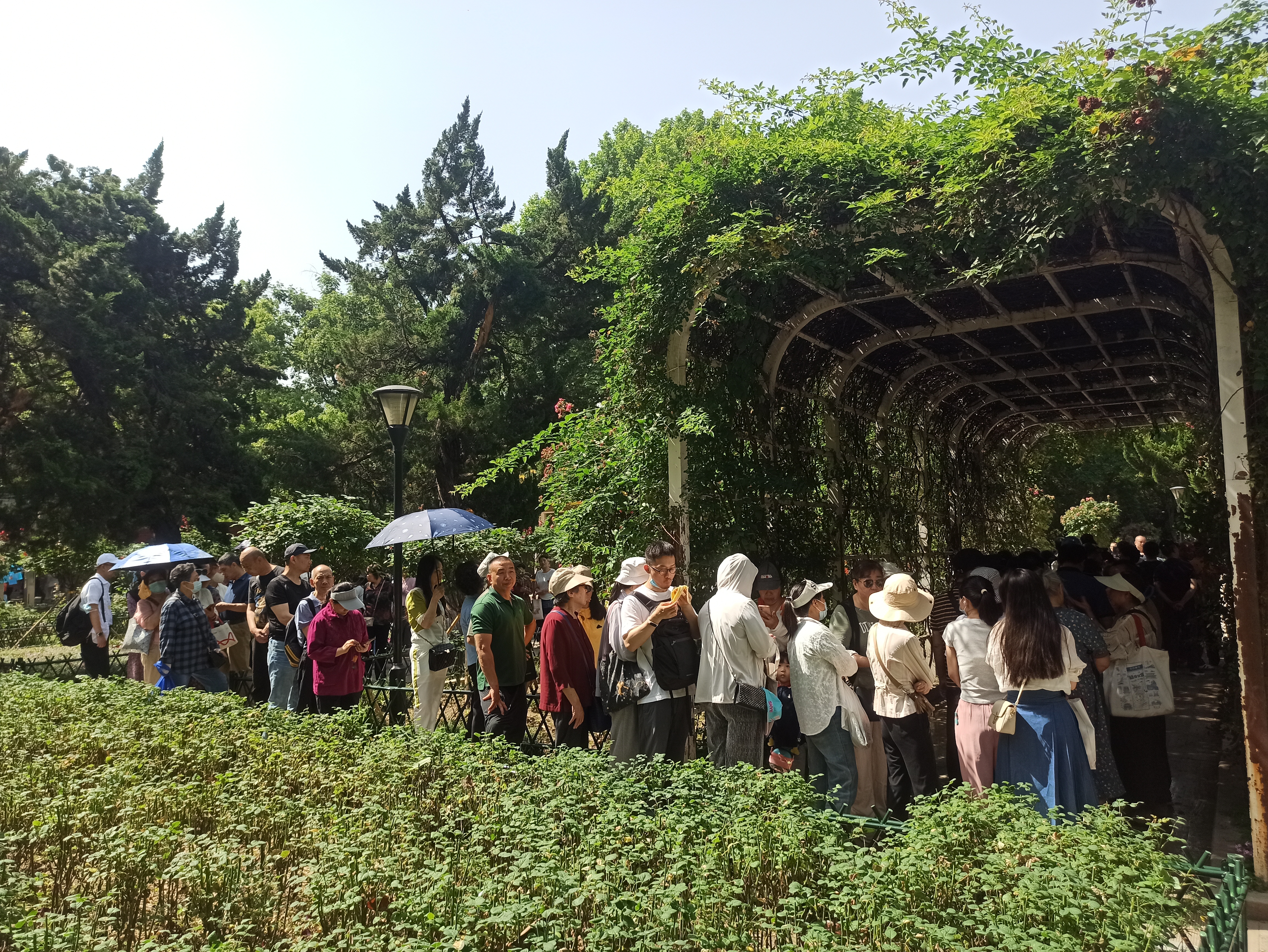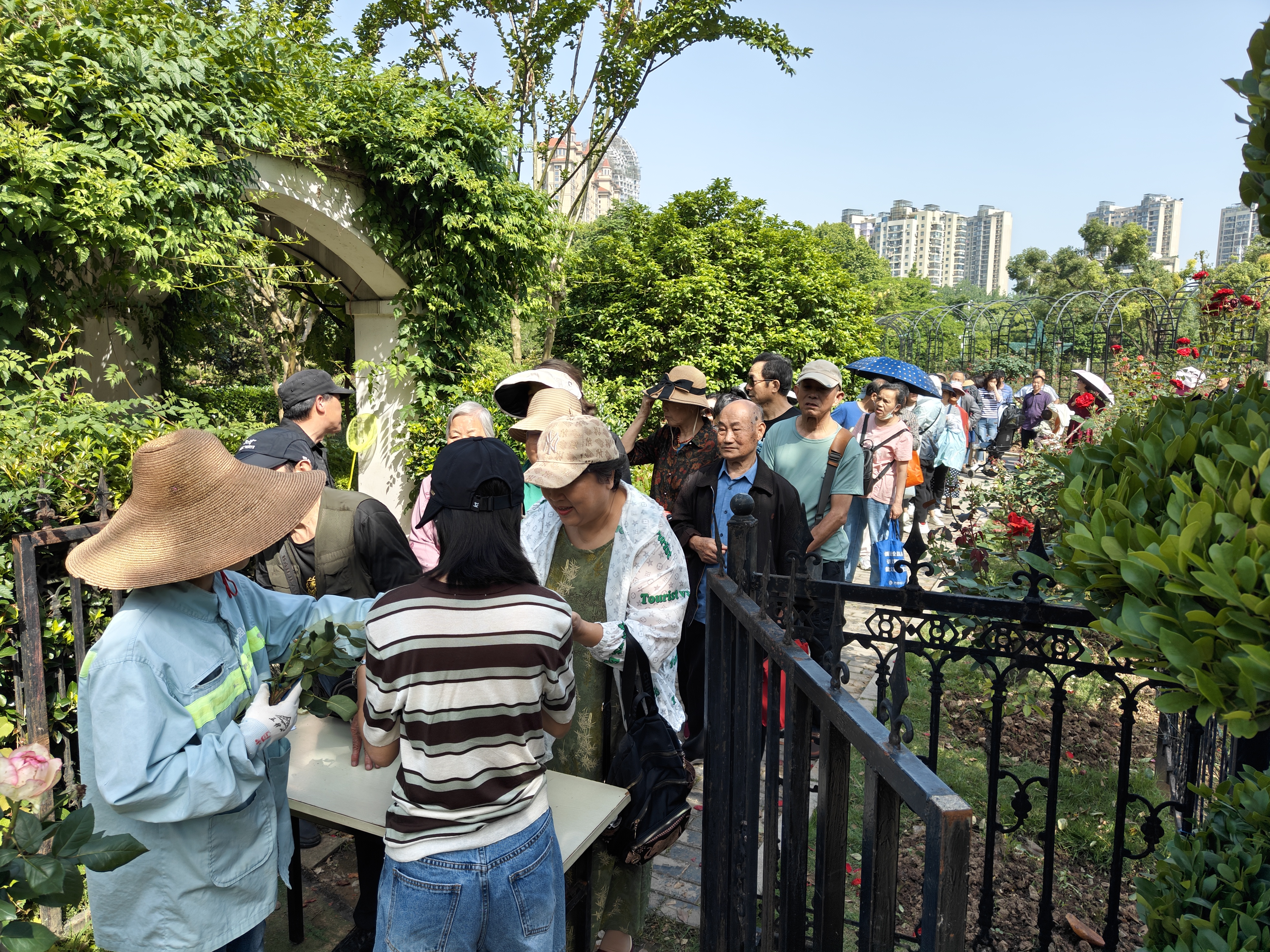 解放公园市民游客排队领取月季扦插条热情高涨。解放公园供图