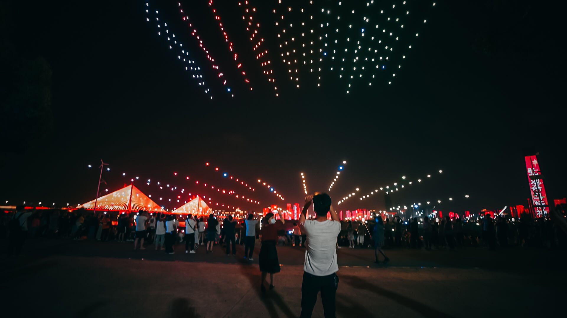 5月4日晚7时20分,长江日报记者到达时,无人机表演现场已经坐满了热情观众。现场观众中,不少都是《灵笼》粉丝,特地从武汉三镇各处赶来。