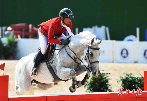 值得一提的是,此次比赛的场地标准对标奥运赛事,马匹跨栏高度最高为1.5米,已接近奥运会1.6米的标准,是武汉承接马术类比赛史上的最高难度。从实战中看,这个难度的场地给许多选手带来巨大挑战。比赛中屡屡出现或大或小的失误:障碍上的横杆被碰落,因马匹两次拒绝被罚直接出局,甚至有马匹一次直接踢断三根横杆的情况,这令本场比赛的竞争变得更加激烈。