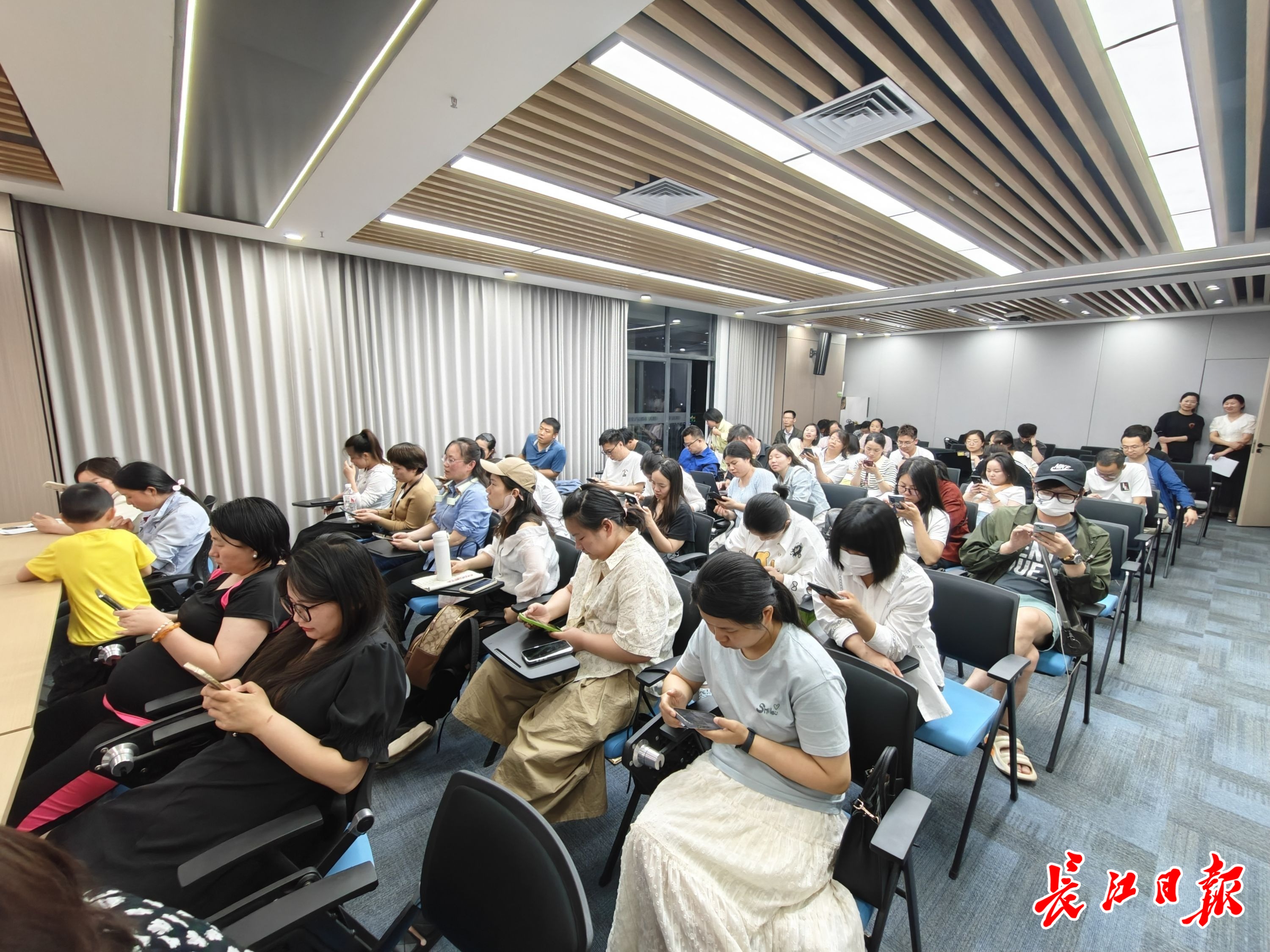 15日晚7时,汉阳区青年夜校的短视频剪辑公益课上,80余名学员正在湖北青创园(汉阳)会议室专心“玩手机”。