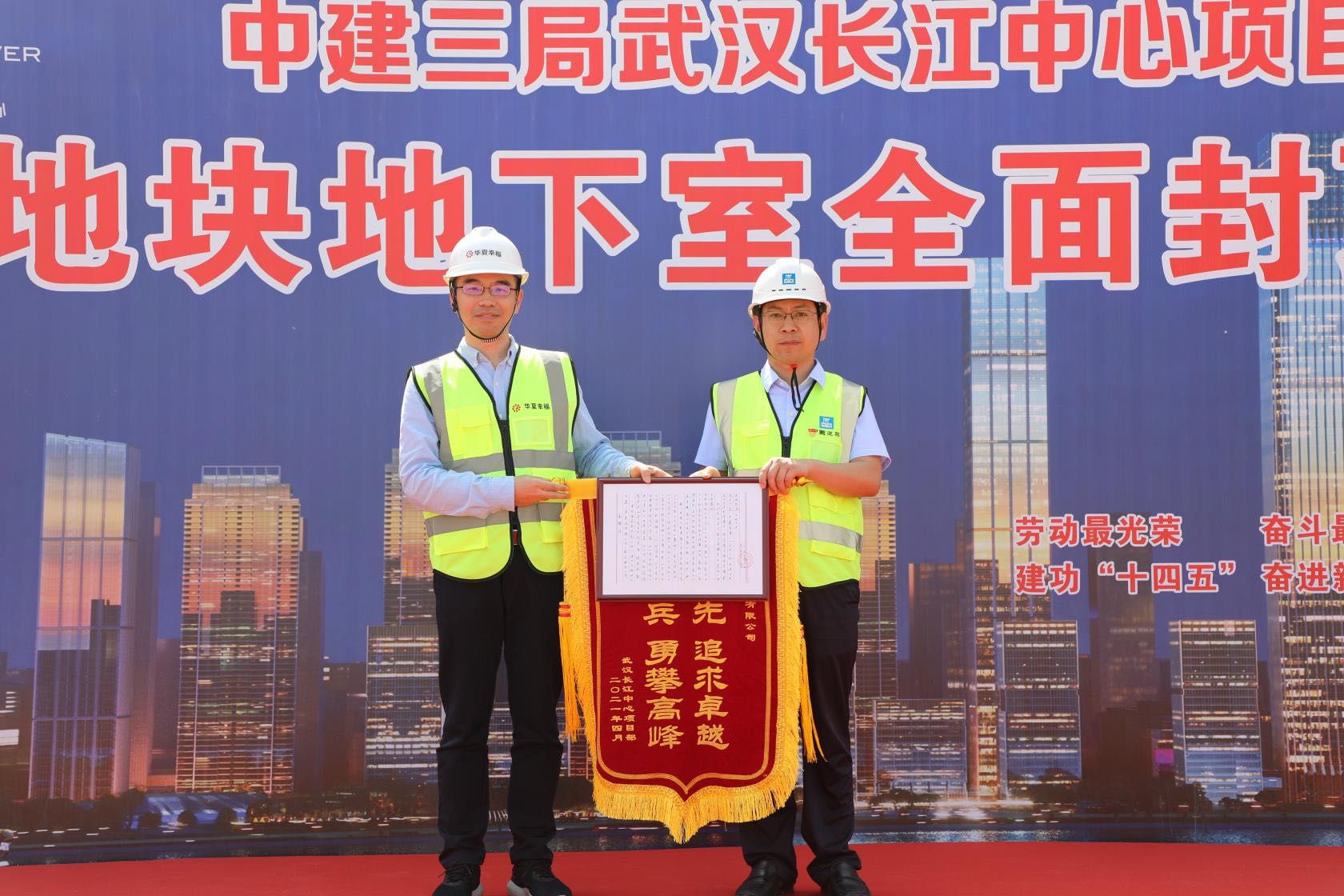 武汉长江中心A1旗舰商业、B1超塔地块地下室全面封顶仪式。