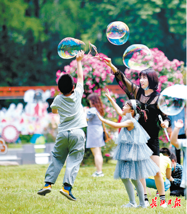 全市51家A级景区“五一”期间游客量井喷,相比2019年“五一”超出两成。图为5月4日,汉口中山公园处处是欢笑。长江日报记者刘斌 摄