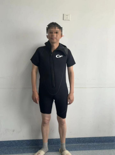 团队在成品潜水服基础上进行裁剪改造,待张先生穿上后,再在他的腰腹部缠上一圈医用收腹带,使潜水服与治疗区域更为贴合。穿上这身特制的医服后,患者全身大面积的肿瘤区域得到紧密包裹,放疗过程中射线经过这个特殊“组织补偿物”的阻碍后,可以把更高的放射能量集中于肿瘤区域,同时照射剂量也分布得更为均匀,增加了对肿瘤的控制效果,减少了对深部正常组织的损伤。