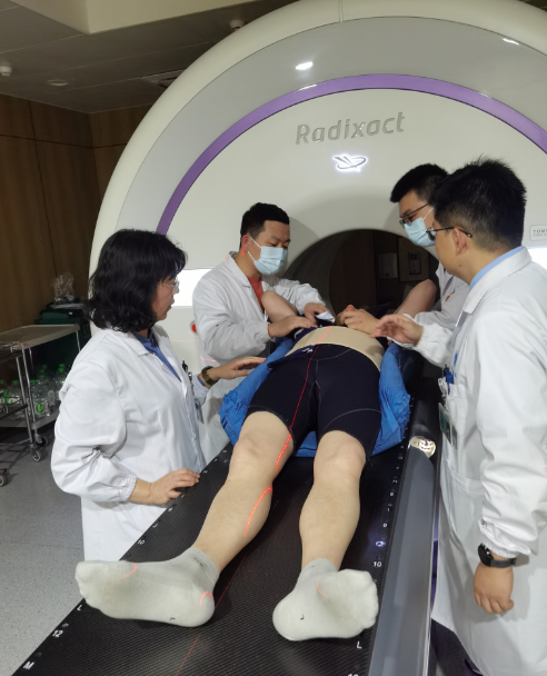 陈静教授(左一)带领团队为张先生进行精准放疗。