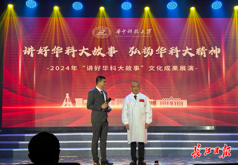 长江日报大武汉客户端5月21日讯 5月20日晚,华中科技大学举办2024年“讲好华科大故事”文化成果展演,该校师生以朗诵、话剧、舞蹈、讲述等形式展演发生在华科大的13个故事。作为援非医疗队队员之一的“人民英雄”张定宇上台讲述了自己的援非故事。