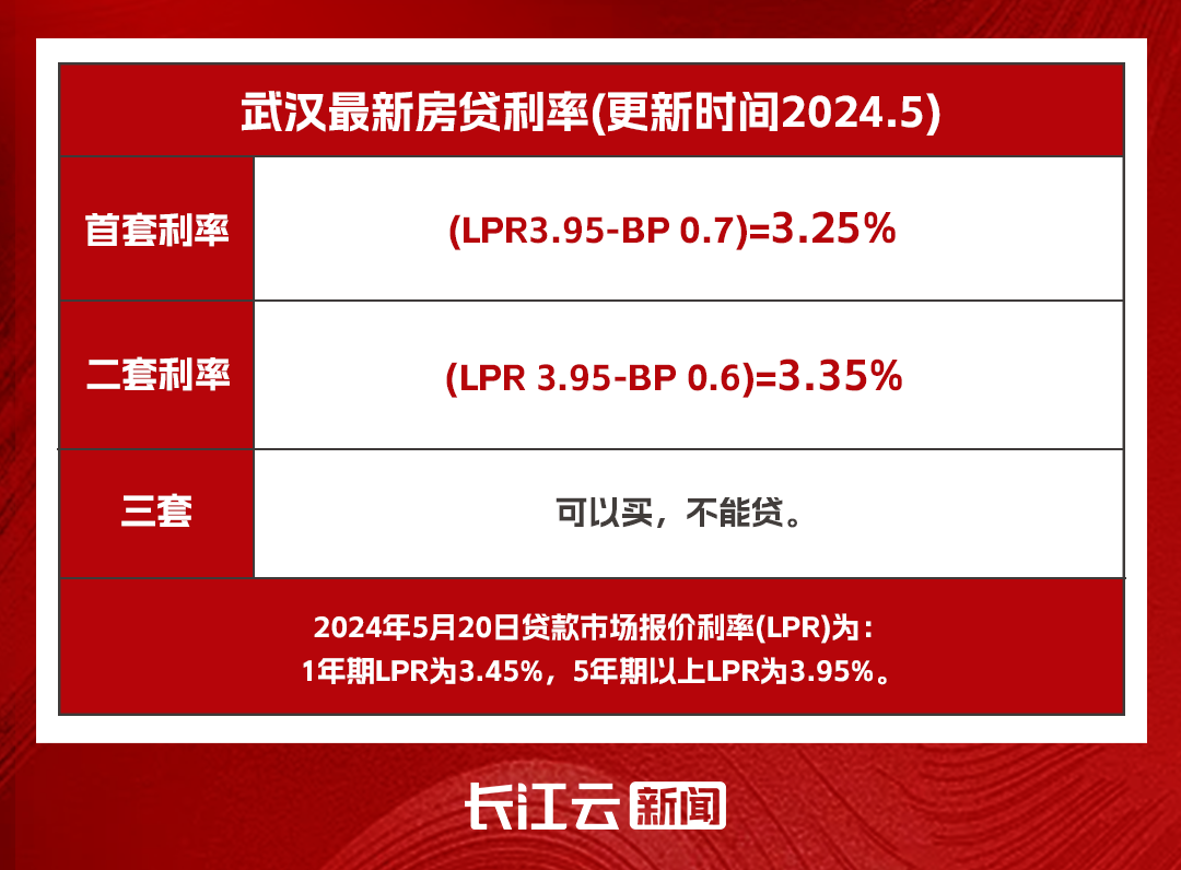 5月21日,有消息称,武汉有部分银行已接到央行下发的通知,首套房贷利率下限调整为LPR-70BP,即3.25%。