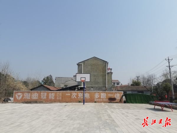 3月3日上午,长江日报记者现场看到,在占女士家楼下,一堵长约15米、高约2米的砖墙喷绘着雅迪电动车的广告语。