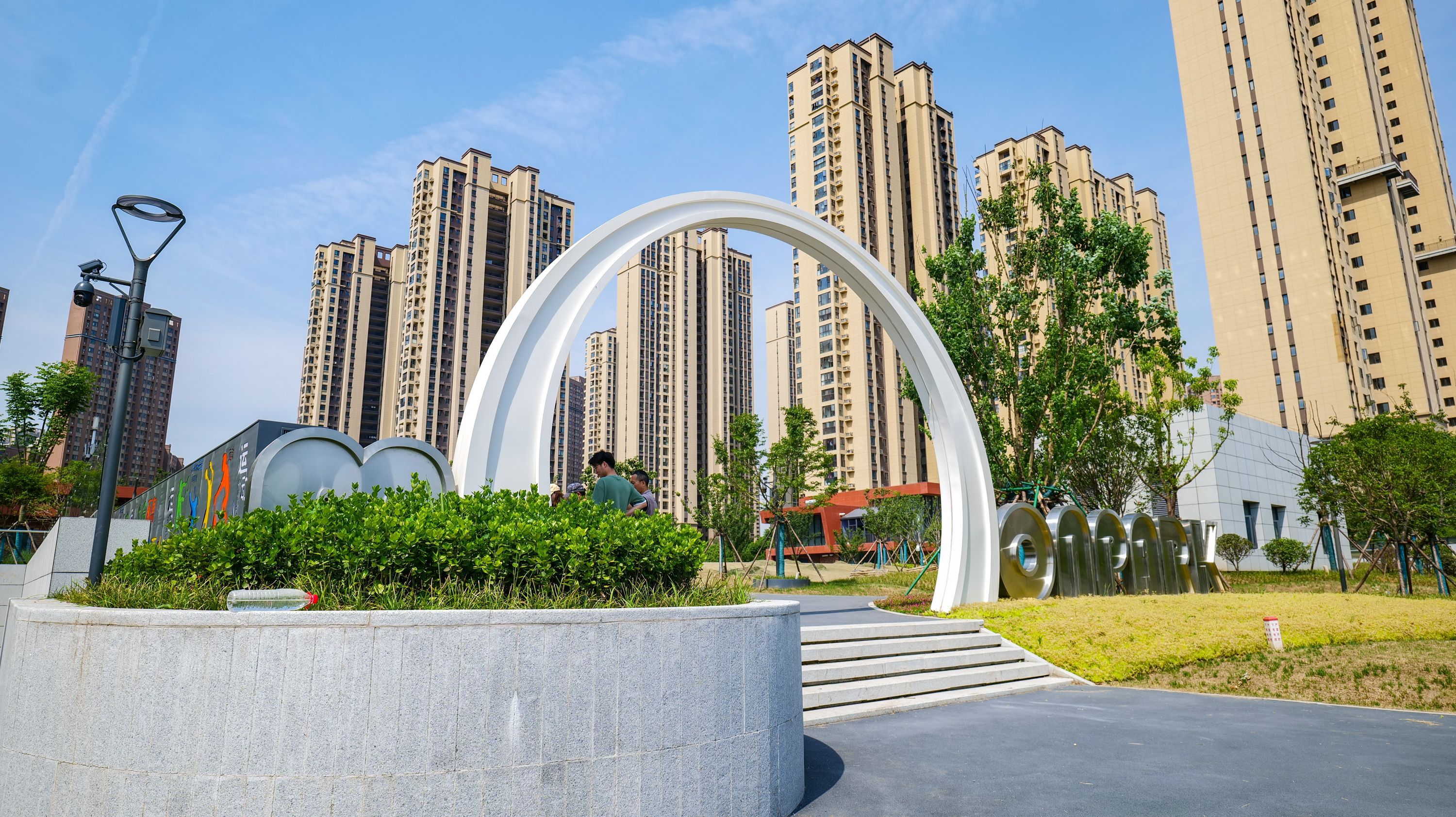 记者来到晓月园正门,新颖的造型让人眼前一亮。这是一座直径约3米的白色圆拱门,形如一轮圆月。
