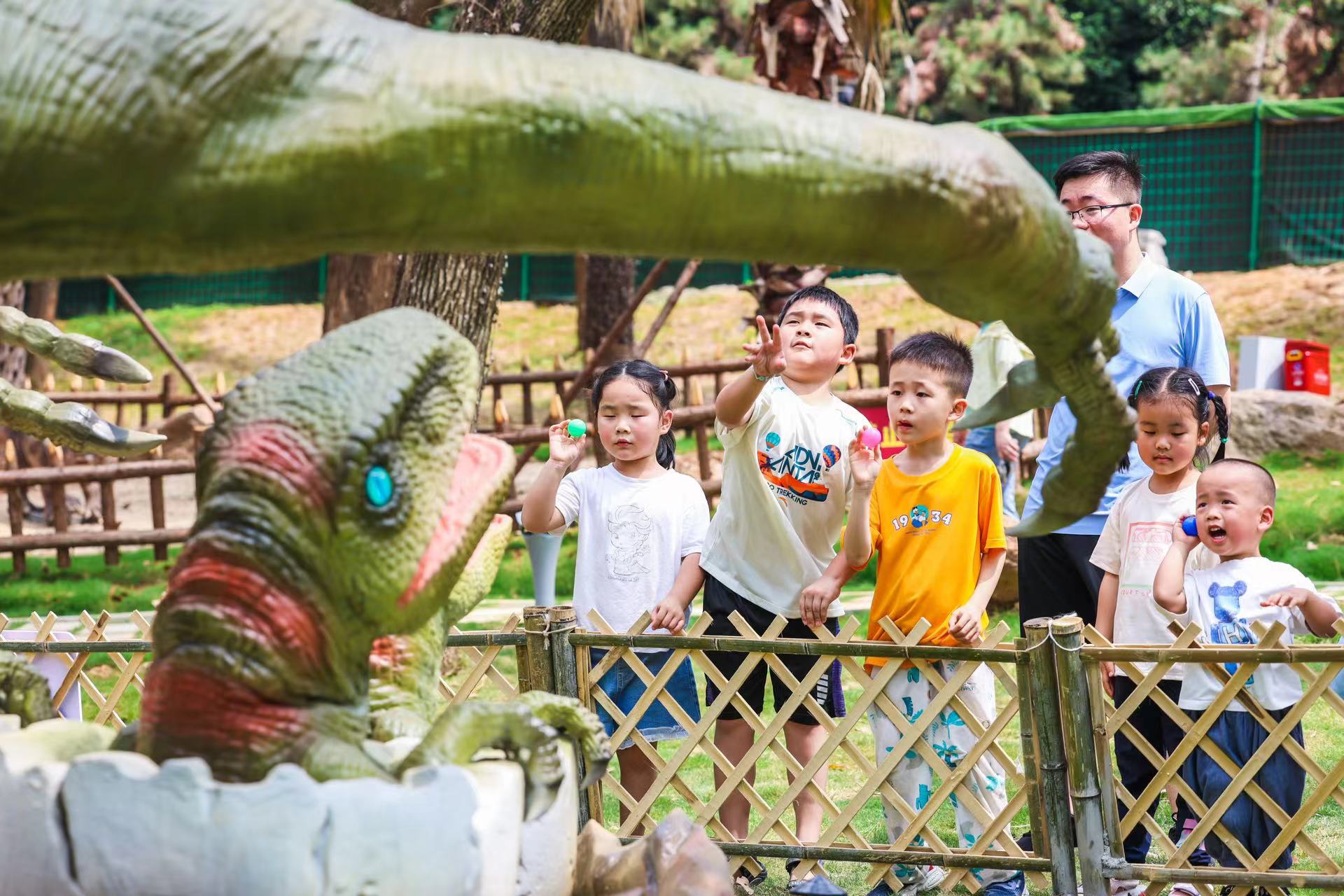 “东湖生态环境优越,旅游自然资源丰富,选址马鞍山森林公园就是看中了得天独厚的自然环境和旅游基础设施。”刘庆华介绍,森林公园地域辽阔,林木茂密,与早期恐龙生活环境相仿,一比一还原的恐龙模型融入其中,营造更沉浸式的游览氛围。茂密的森林也具有“遮阳伞”“造氧机”功效,让游客游玩更舒适。
