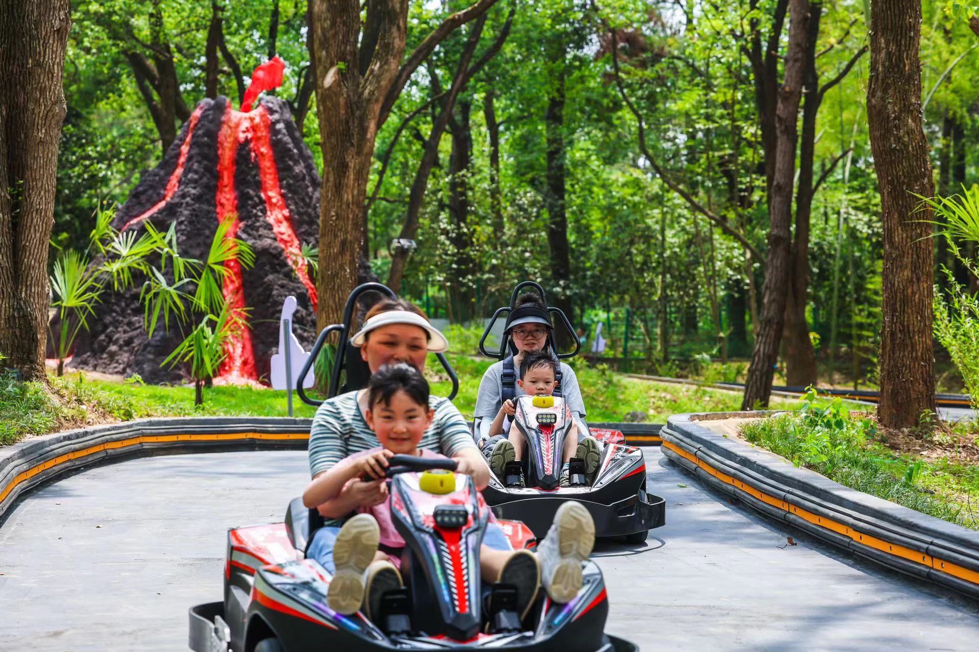 据悉,游客可体验刺激的卡丁车项目,驾乘飞行器行驶在时空隧道里,穿梭于“星球”“火山”“暴掠龙”等惊险挑战中;CS野战基地,真实模拟对抗场景,团队协作与战术策略在这里得到充分展现;魔网攀爬、丛林穿越项目充满挑战性和趣味性,小朋友们可以在上面欢快地攀爬、尽情地跳跃、肆意地玩耍,既锻炼身体意志,又收获无尽欢乐。林涧溯溪、龙谷探宝、骑行恐龙、投篮恐龙等各种娱乐项目和森林营地等休闲配套,适宜亲子游玩和团建体验。