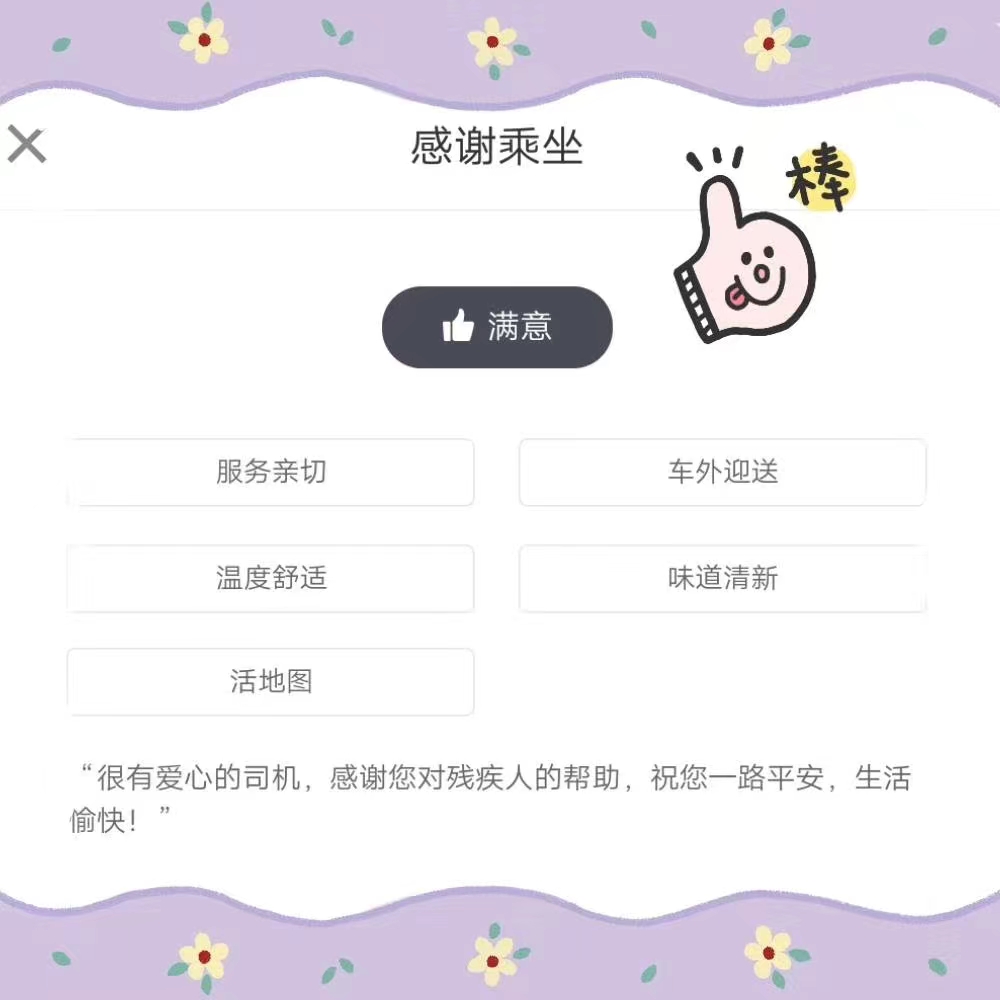 前段时间,王娟在育才小学做完宣导活动,她叫了车,刚开口,司机说:“我记得你,你上次是从汉阳走的,我看到你给我写的评语。”对每位帮她的司机,王娟都会写评语,内容差不多,“感谢您对残疾人的帮助”。这次她扫了出租车内的二维码,给司机打了“满意”。