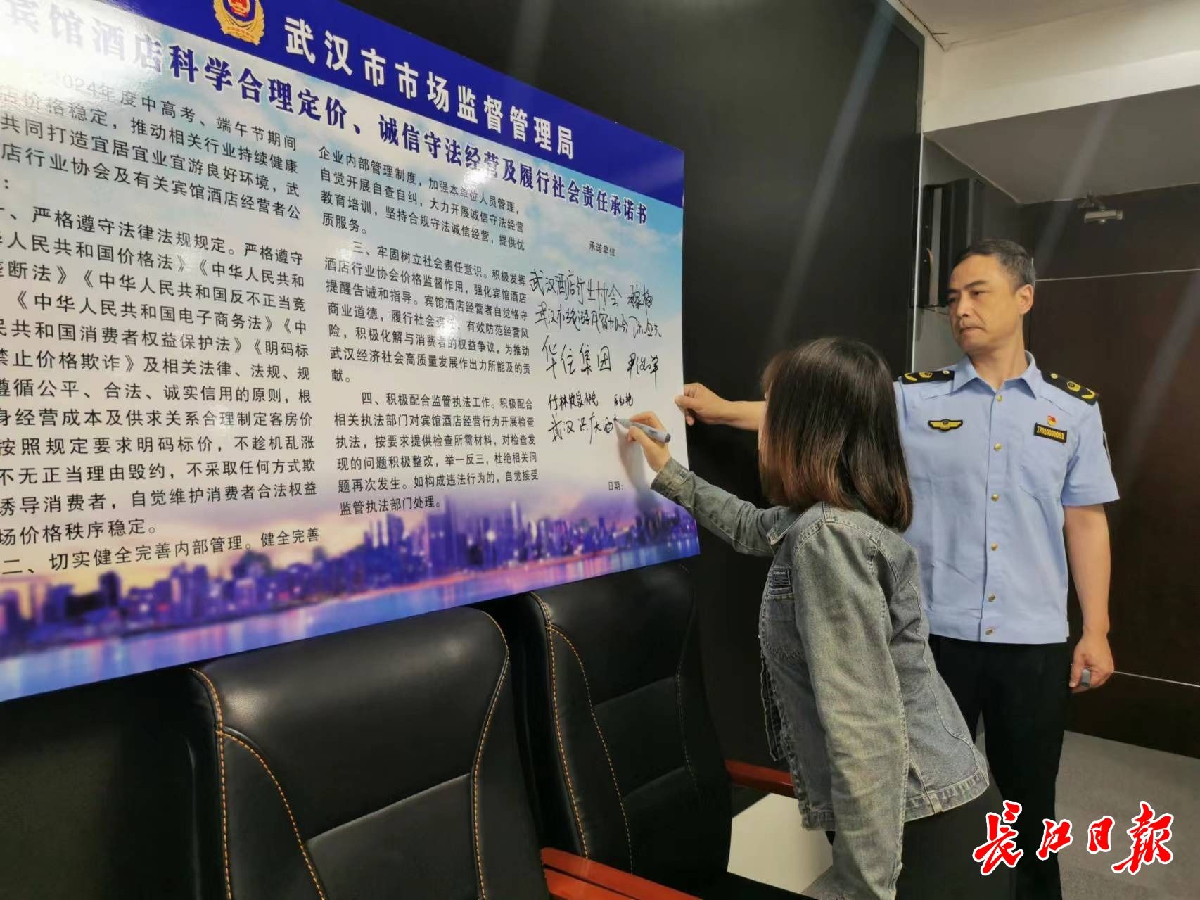 武汉市酒店行业协会及有关宾馆酒店相关负责人公开承诺,维护2024年度中高考、端午节期间宾馆酒店价格稳定,共同打造宜居宜业宜游良好环境。严格遵守法律法规,切实健全完善内部管理,牢固树立社会责任意识,积极配合监管执法工作。