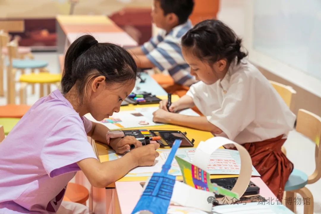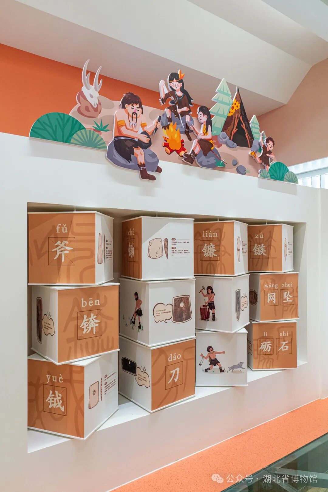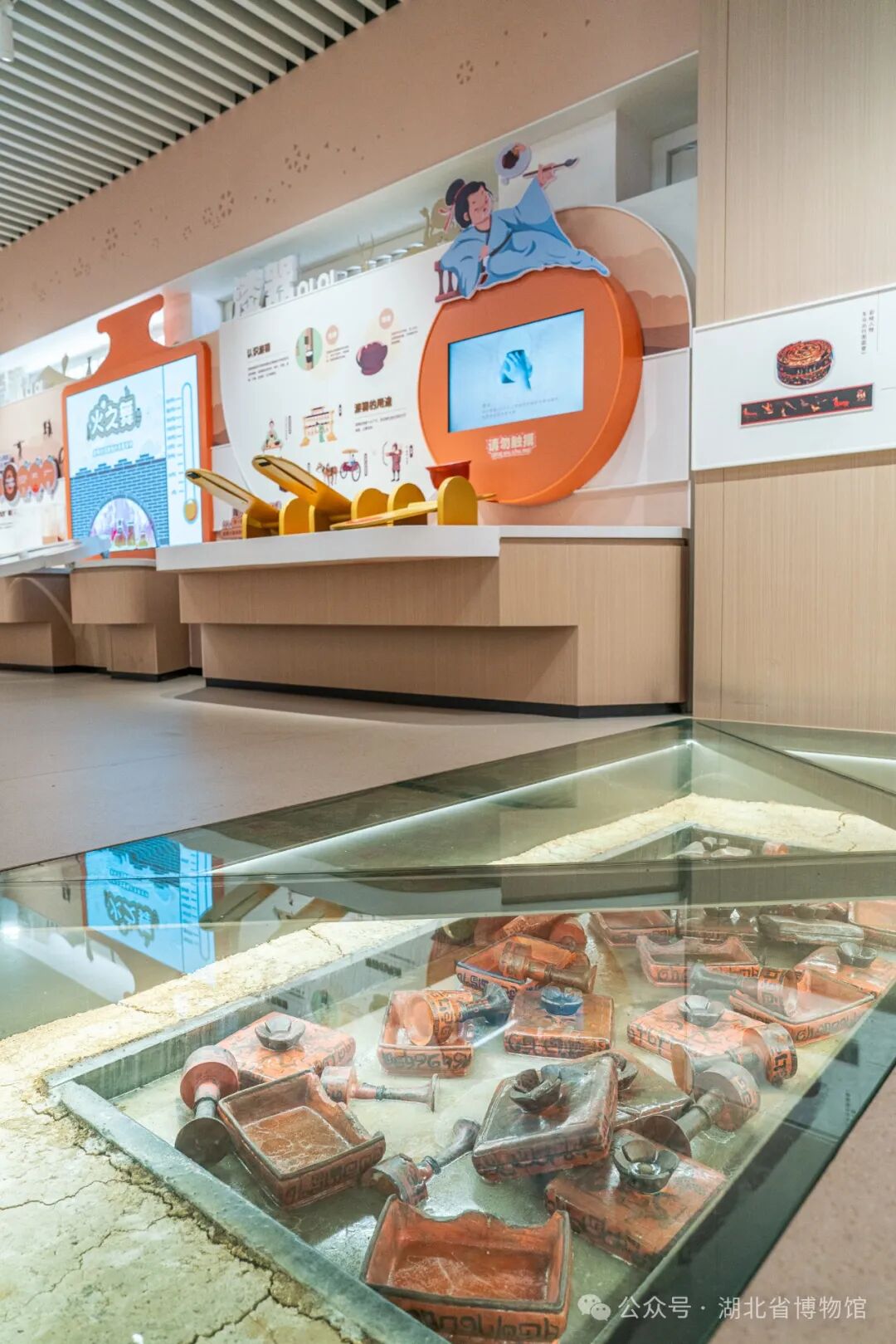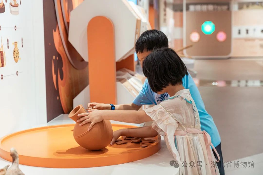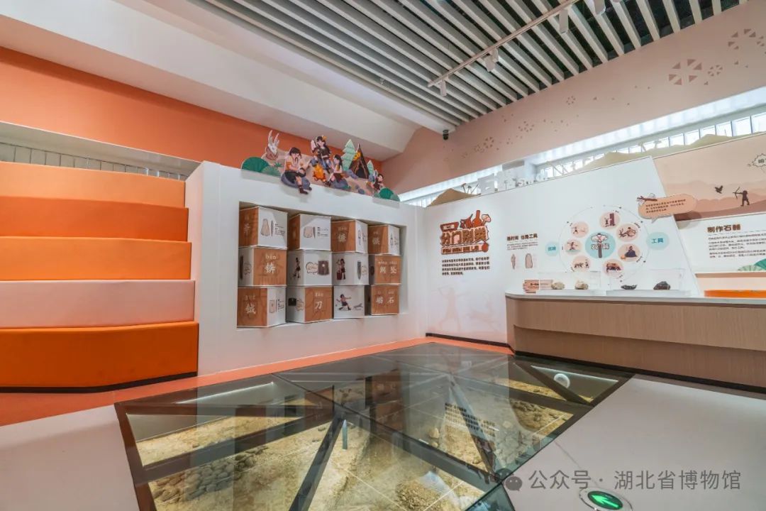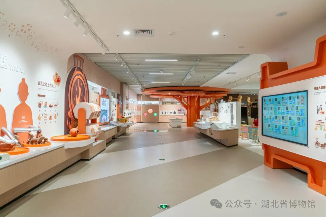 湖北省博物馆少儿体验馆,从基础设计就考虑孩子们的心理需求,温暖明亮的橙与白是主色调,开阔的空间和低矮展柜让小朋友们不用踮脚也能看清所有细节。
