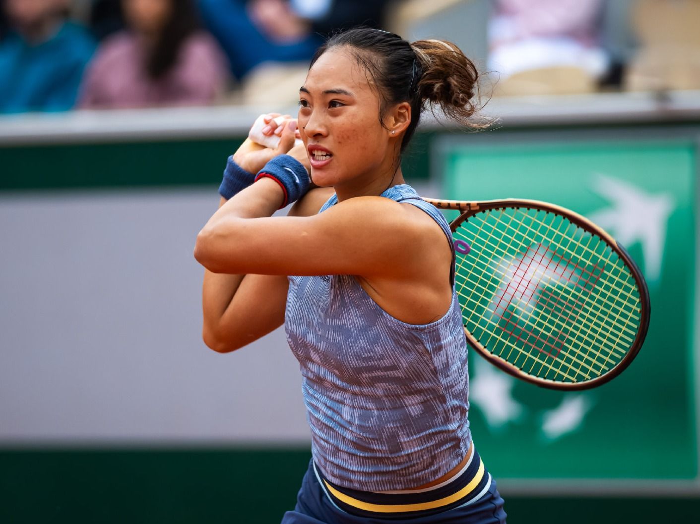 郑钦文在比赛中。来源:WTA国际女子网球协会官网