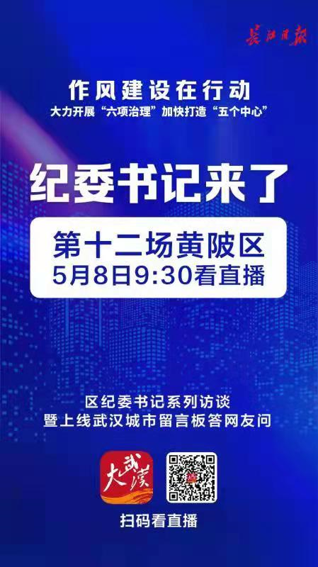 8日9时30分,区纪委书记系列访谈暨上线答网友问活动举办第十二场,黄陂区委常委、区纪委书记、监委主任陈军携相关部门负责人做客大武汉客户端直播间,接受访谈并在线答问。 详见>>