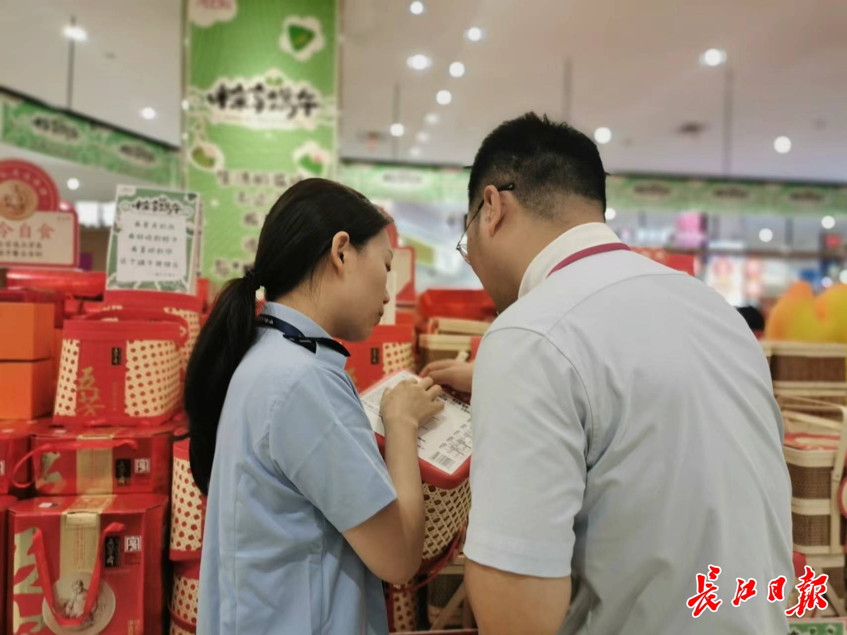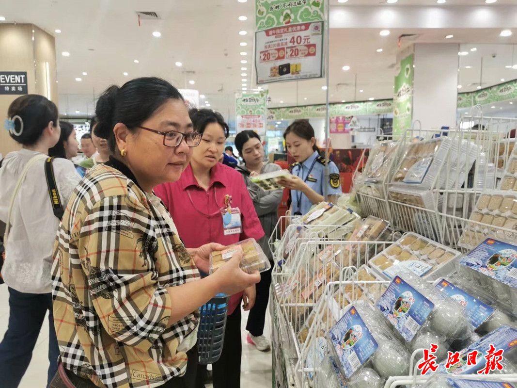长江日报大武汉客户端6月5日讯 “混装礼盒注意不同食品的保质期并不相同。”6月5日,端午节前夕,市场监管人员对全市商超内粽子、绿豆糕等节令食品进行食品安全及价格公示检查,并现场向市民讲解安全消费常识。