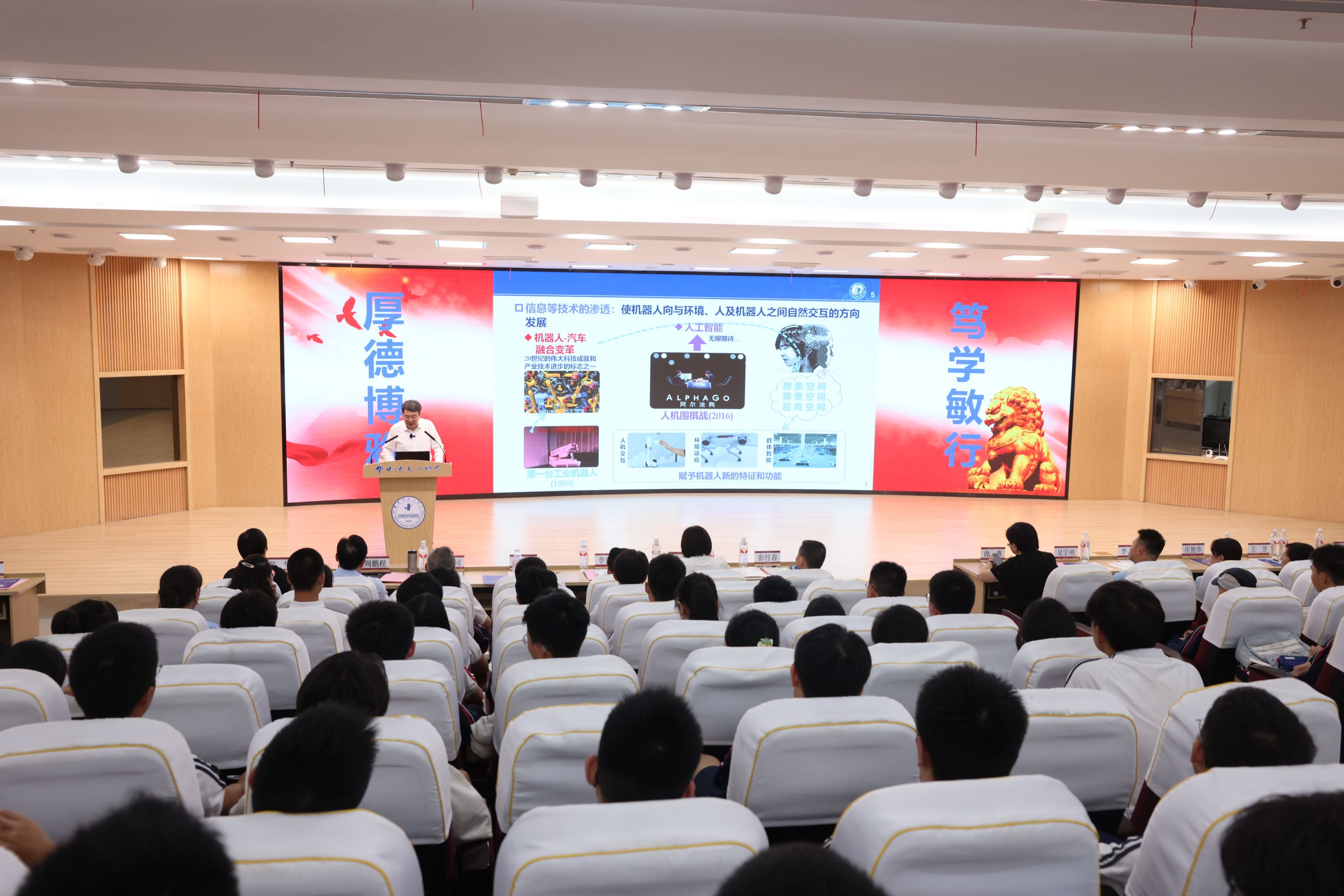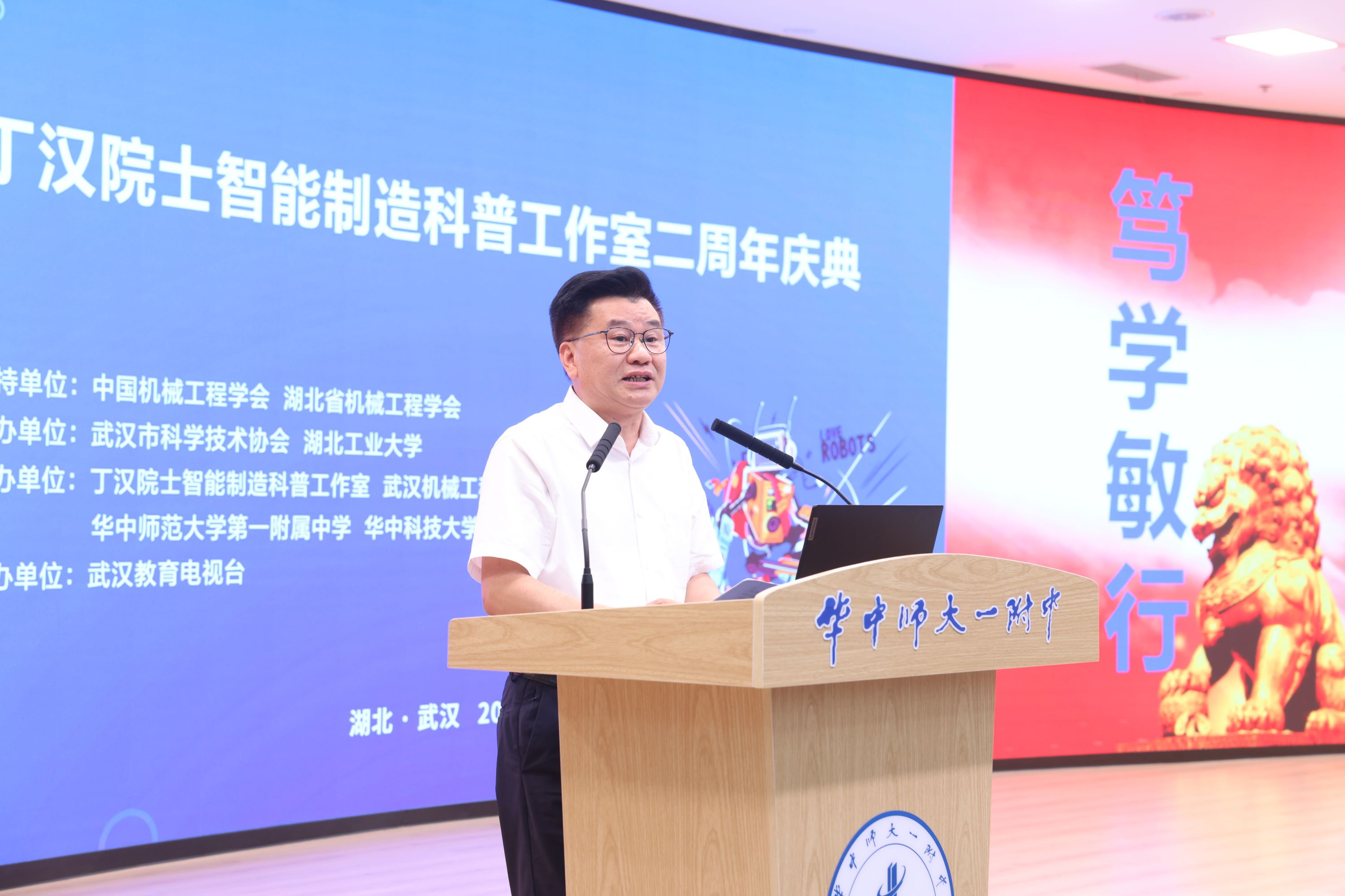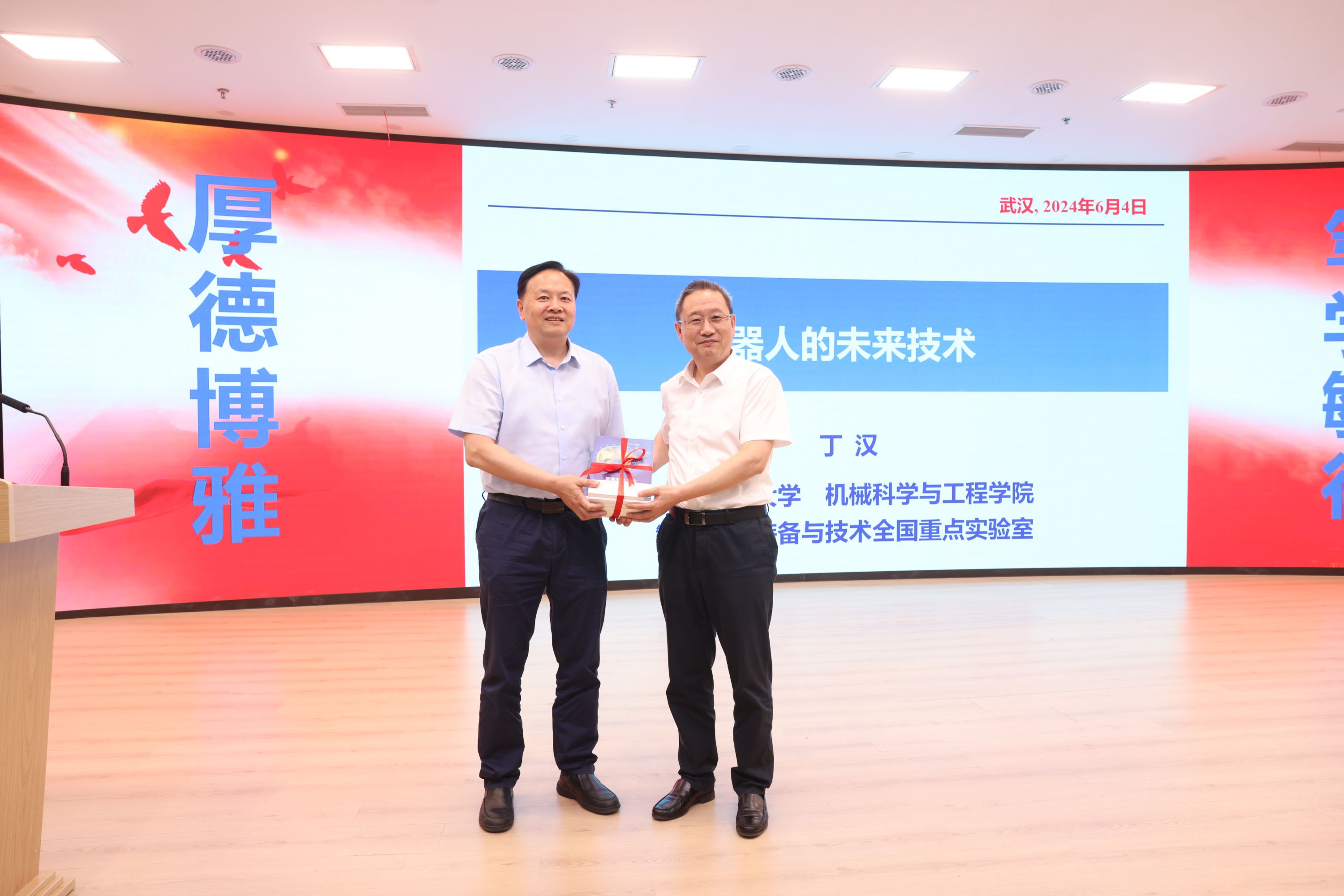 6月4日下午,“江城科学讲堂:机器人的未来发展趋势”暨丁汉院士智能制造科普工作室2周年庆典活动在华中师范大学第一附属中学举办。中国科学院院士丁汉为300余名学生作科普报告《机器人的未来技术》,并与青少年亲切交流,鼓励青少年成为“技术科学型人才”,为国家智能制造事业贡献技术力量。
