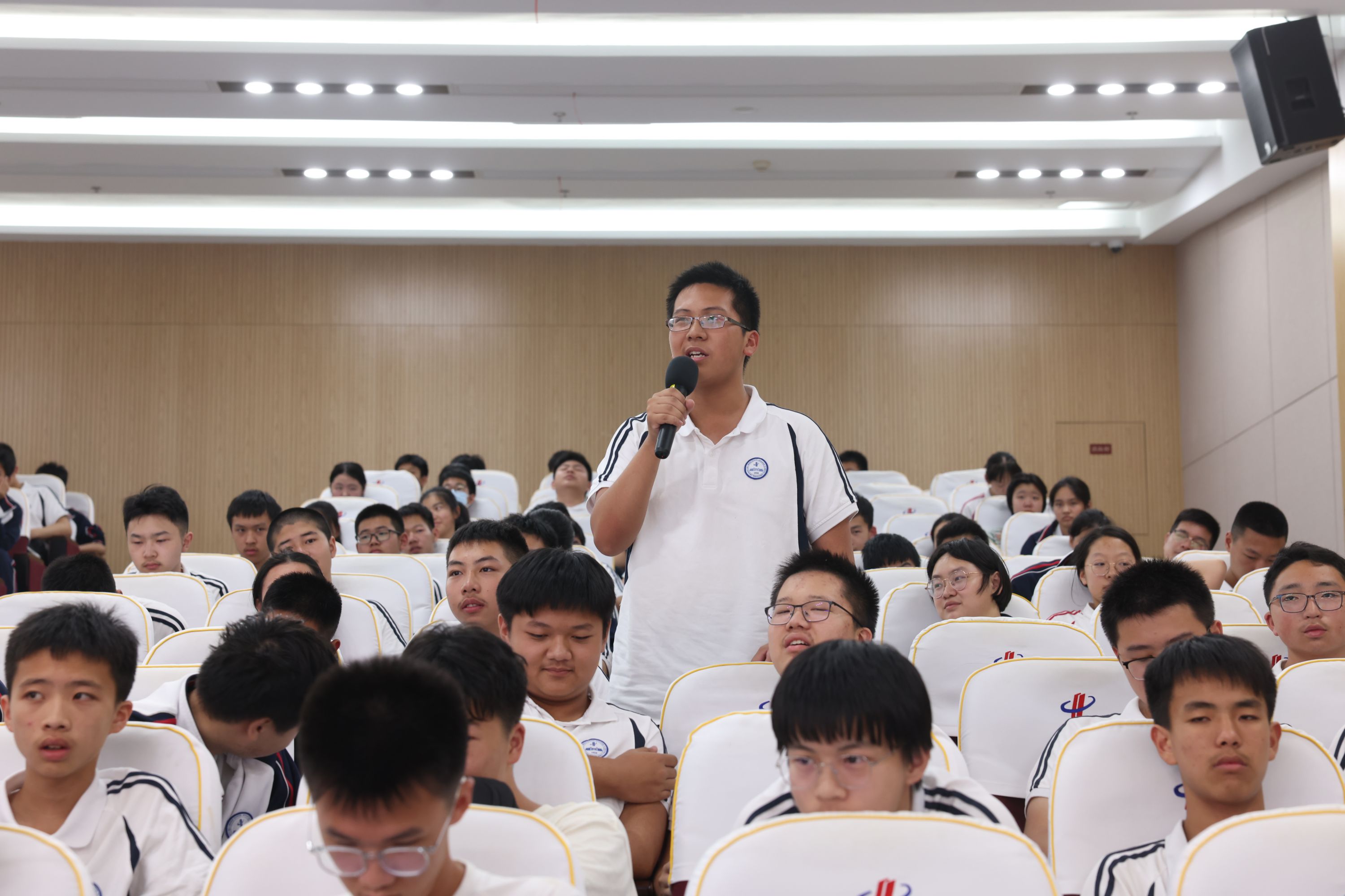 现场,来自华中师范大学第一附属中学的学生踊跃举手提问,丁院士一一耐心解答,并签赠了丁汉院士智能制造科普工作室出品的科普书籍《智能制造之旅》。