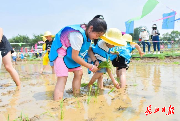 孩子们在紫薇都市田园插秧苗。资料图片