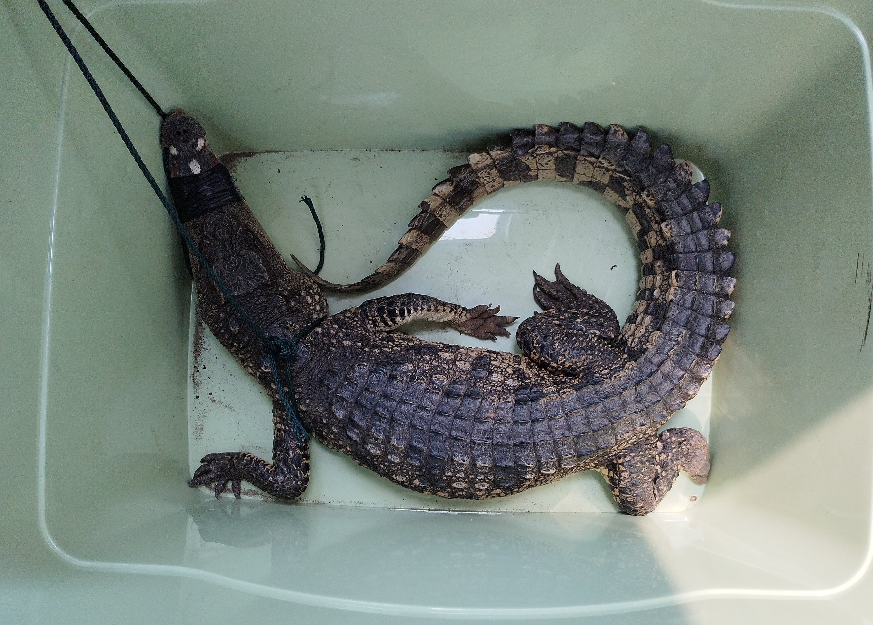 这条鳄鱼长约1.2米,重约15公斤,左后爪缺失。