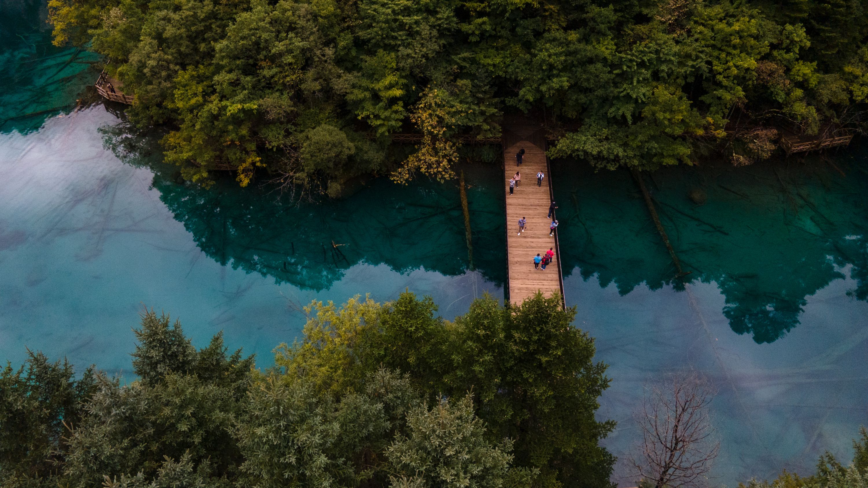 九寨沟景区。新华社记者唐文豪 摄(资料图片,无人机拍摄)