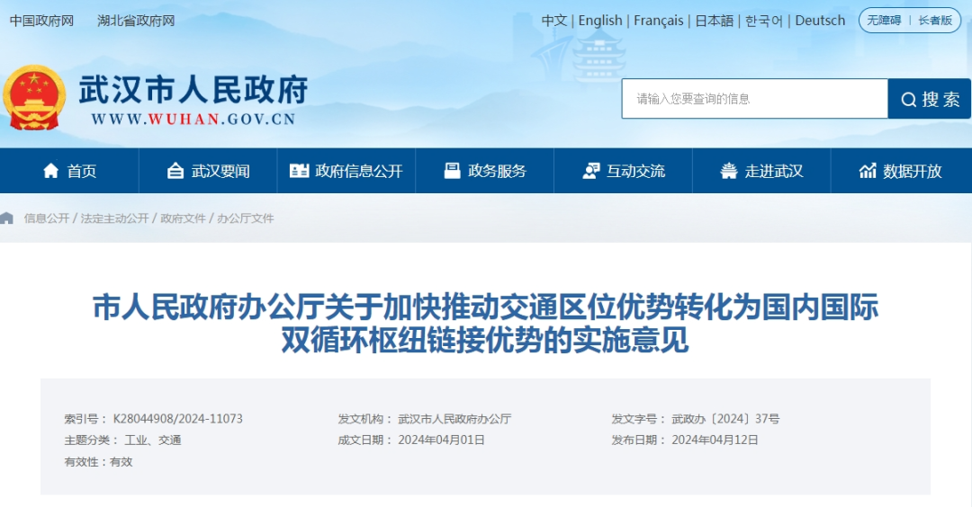 武汉市人民政府网发布