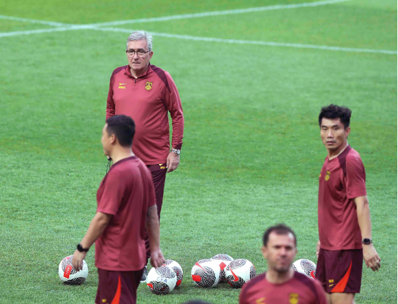 6月10日,中国队主教练伊万科维奇(上)在训练中。 新华社发