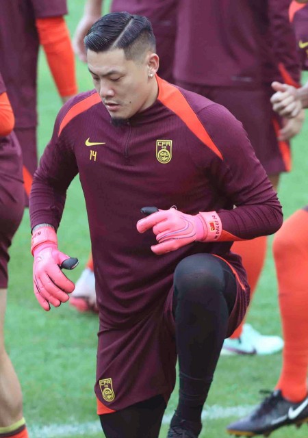 6月10日,中国队守门员王大雷在训练中。 新华社发