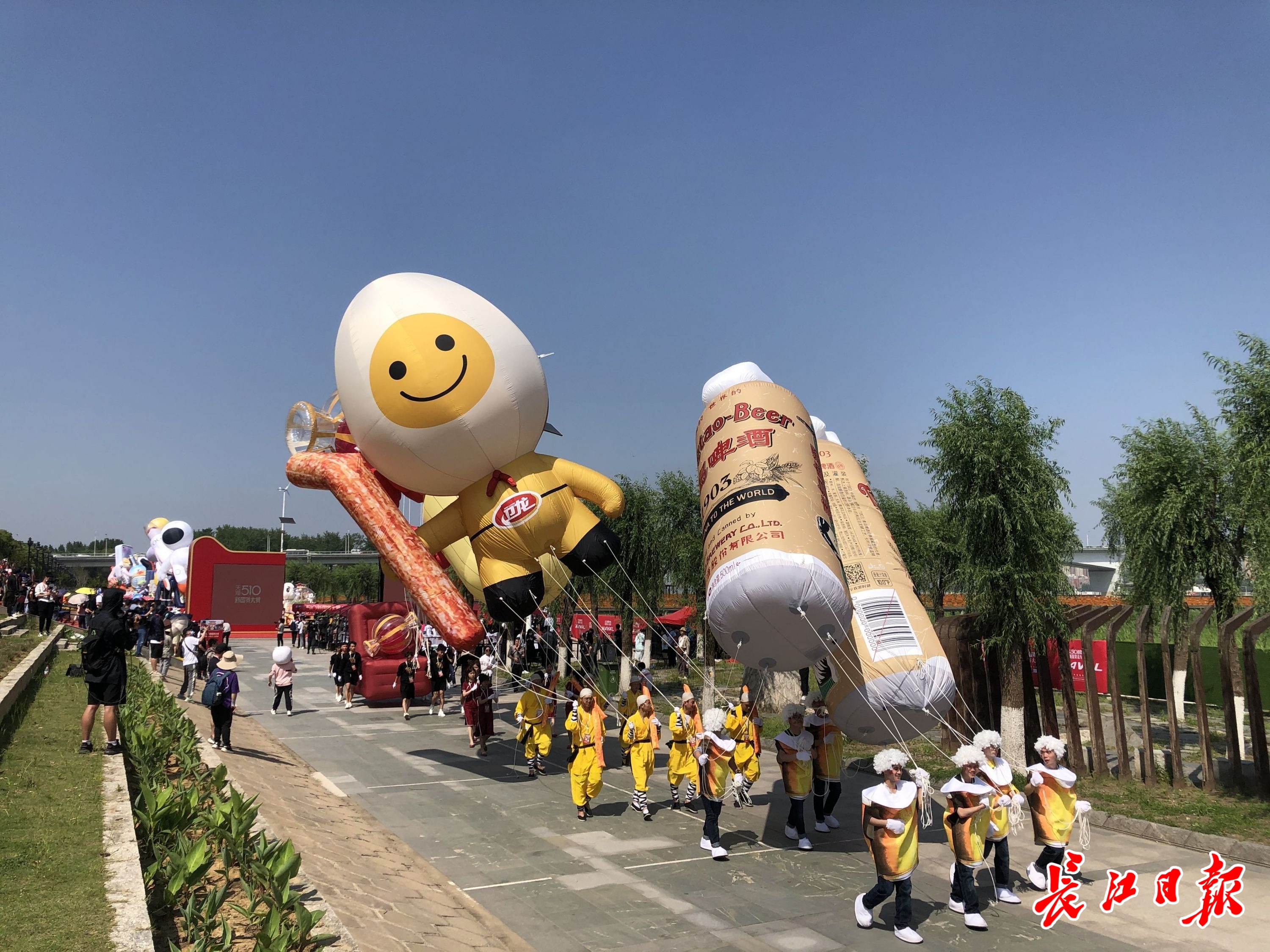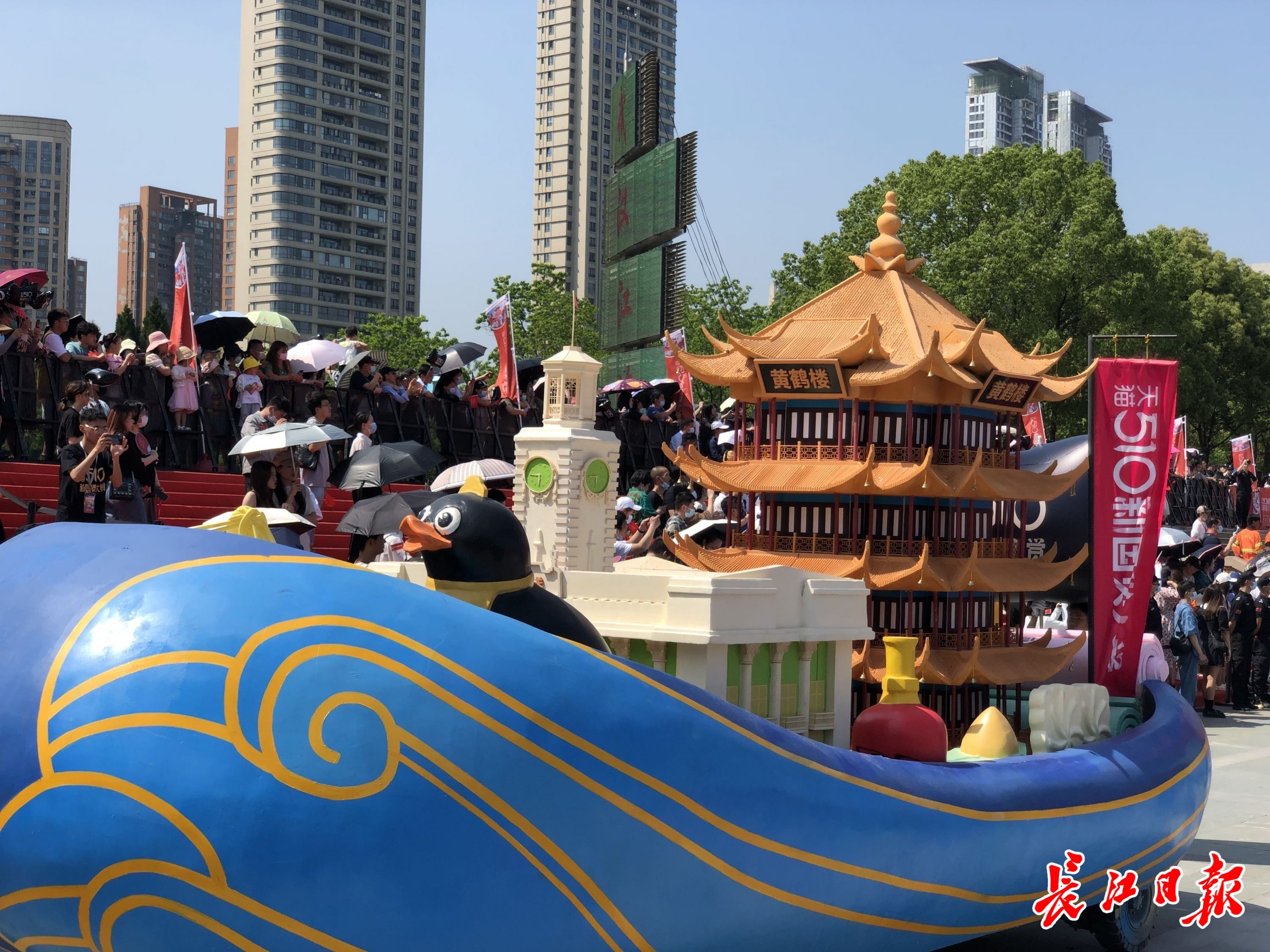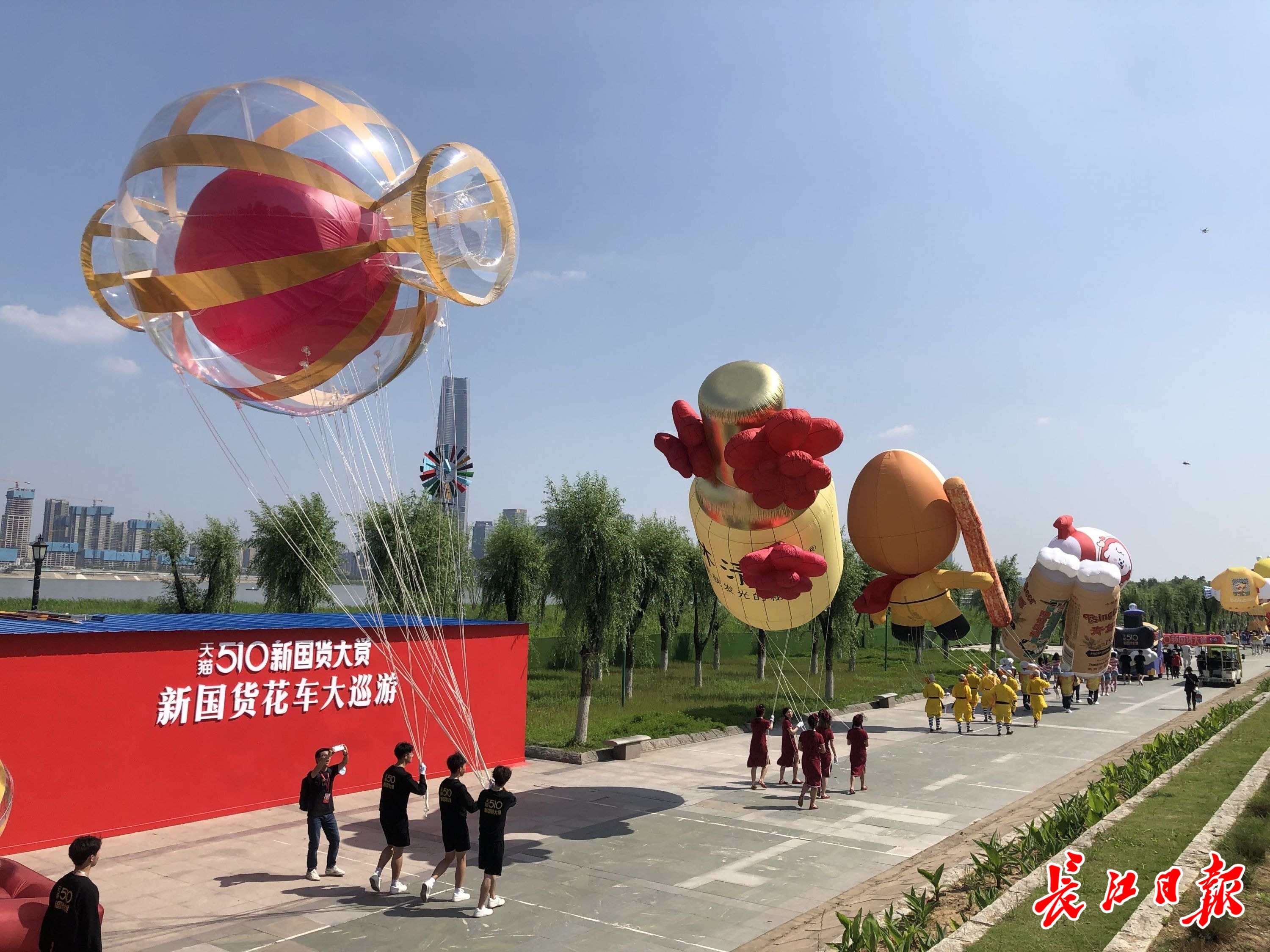 围绕“中国匠心”“非遗文化”“新东方美学”等多个主题,巡游吸引了众多国货品牌、文化IP、明星、艺术家和主理人参与共创,10辆花车、31个气球,水陆空全覆盖武汉江滩。(长江日报记者刘斌 摄影报道)