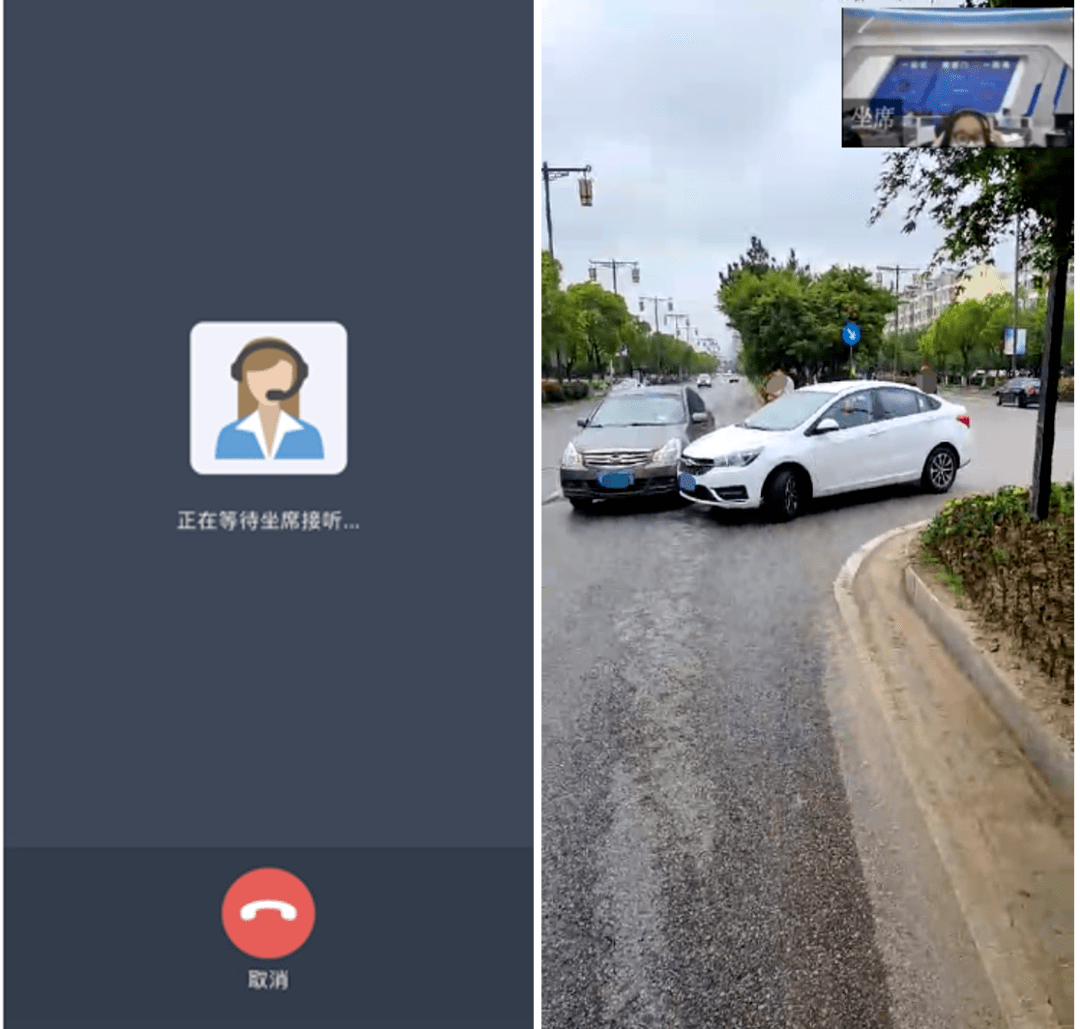 当事人点击“视频报警”按钮后,呼叫等待公安交管部门接警人员接听,接警人员接听后进入双方视频通话。当事人持手机切换前后摄像头,在接警人员指导下配合远程取证。
