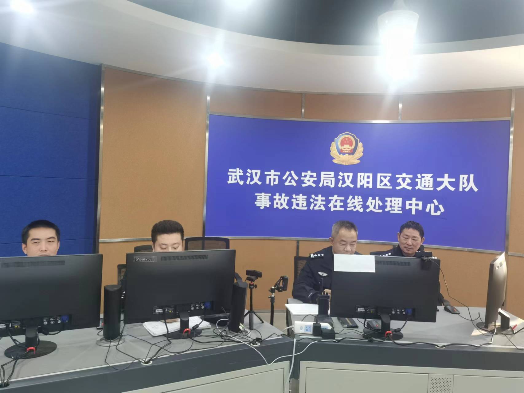 13日下午,汉阳区交通大队事故违法在线处理中心里,视频连线的呼叫声此起彼伏。4名民、辅警坐在电脑和摄像头前,通过远程执法后台负责轻微交通事故视频快处定责和远程执法支撑。