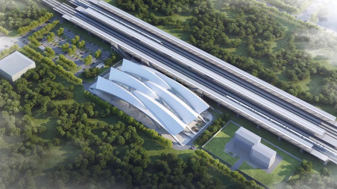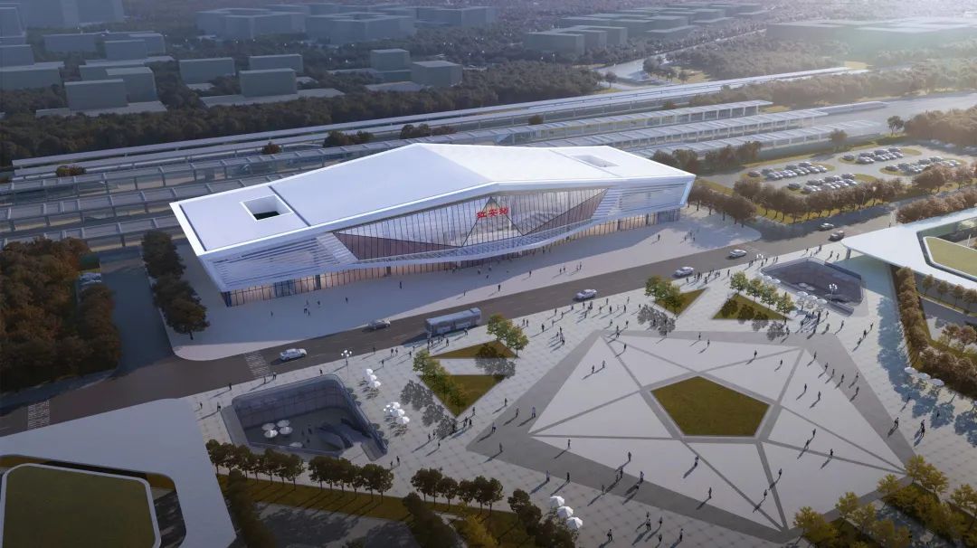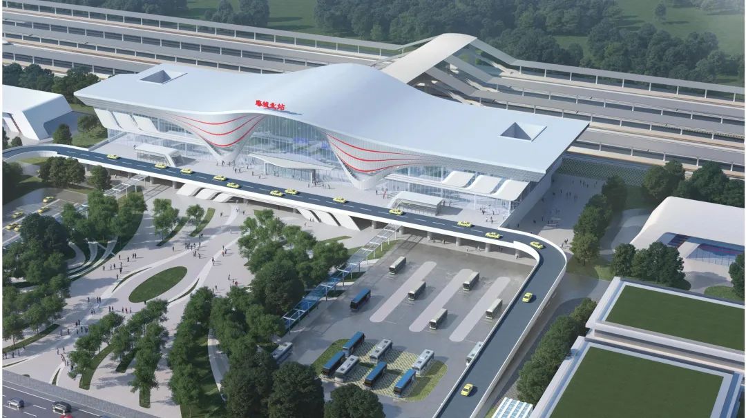 长江新区站位于湖北省武汉市东北部黄陂区,设2台4线,预留1台4线城际场,站房面积共12000平方米。