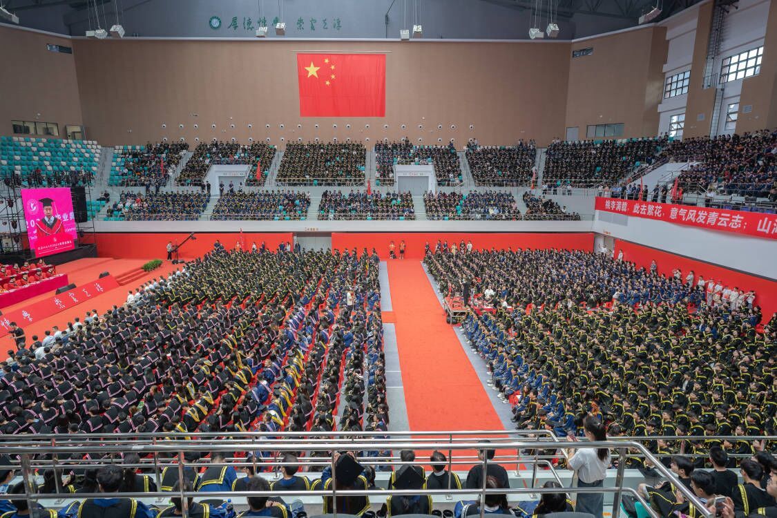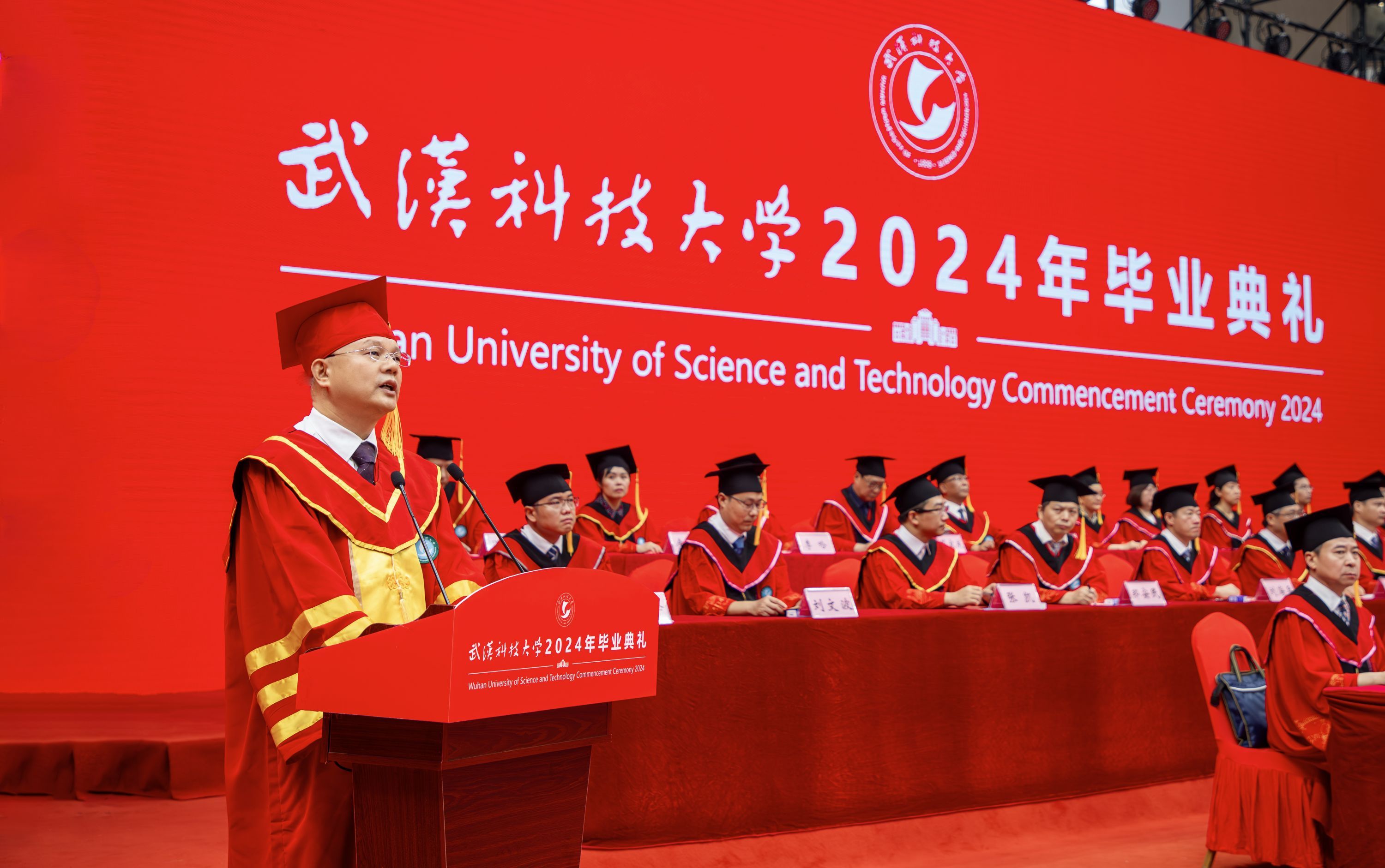 6月14日上午,武汉科技大学在该校沁湖体育馆举行2024年毕业典礼暨学位授予仪式,校长倪红卫致辞并叮嘱毕业生“心向阳光”。