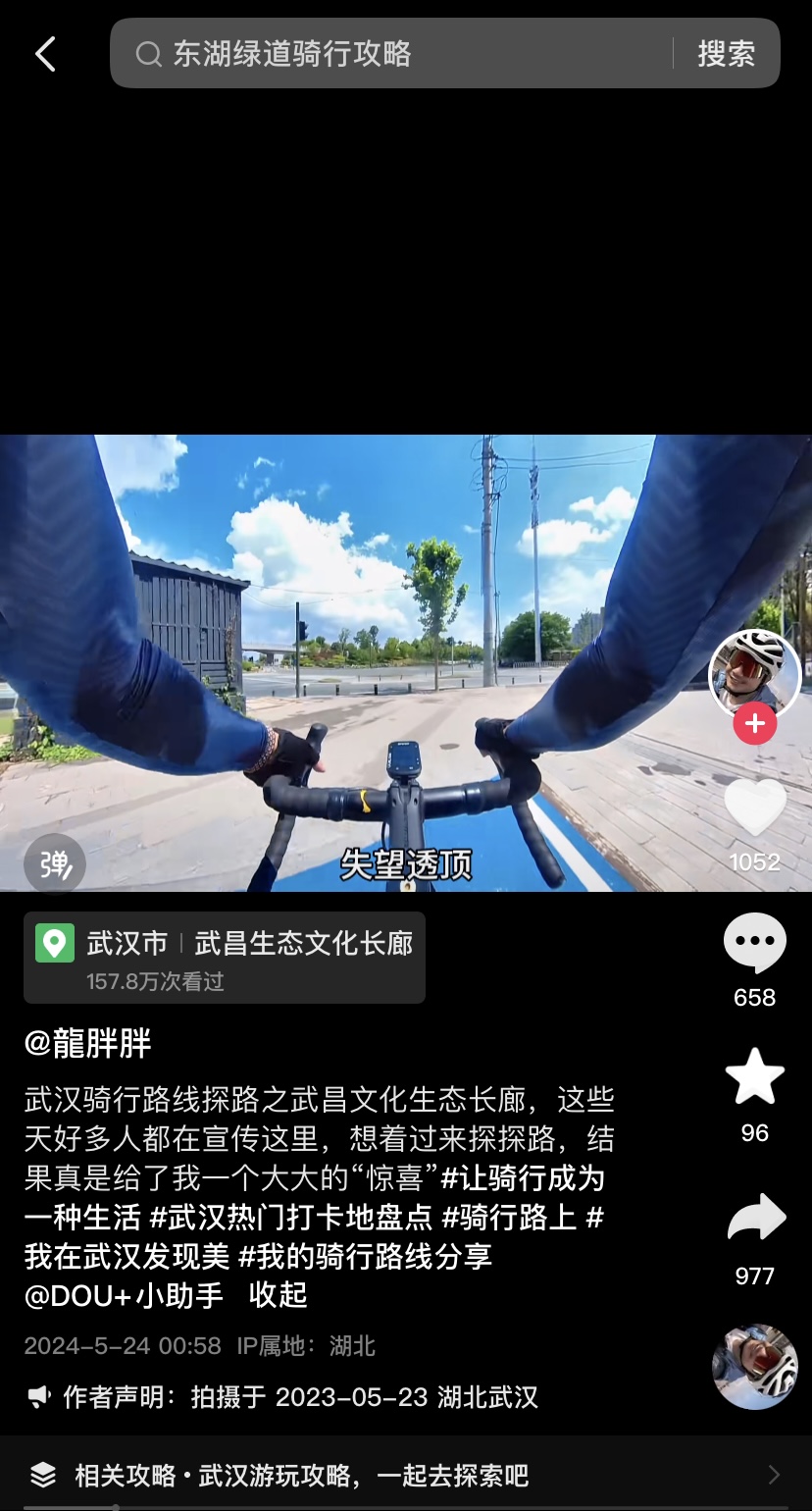 抖音骑行博主龍胖胖发布“打卡”视频。