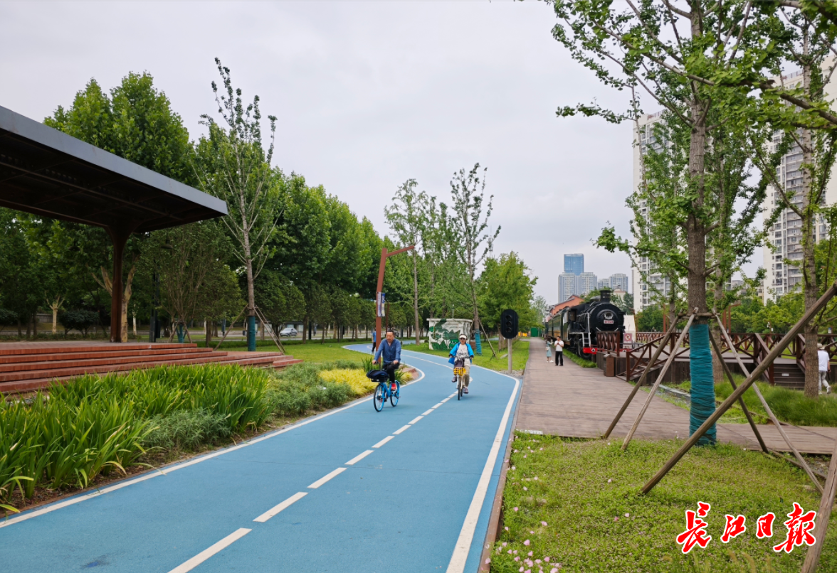 市民在武昌生态文化长廊绿道骑行。记者余睿 摄