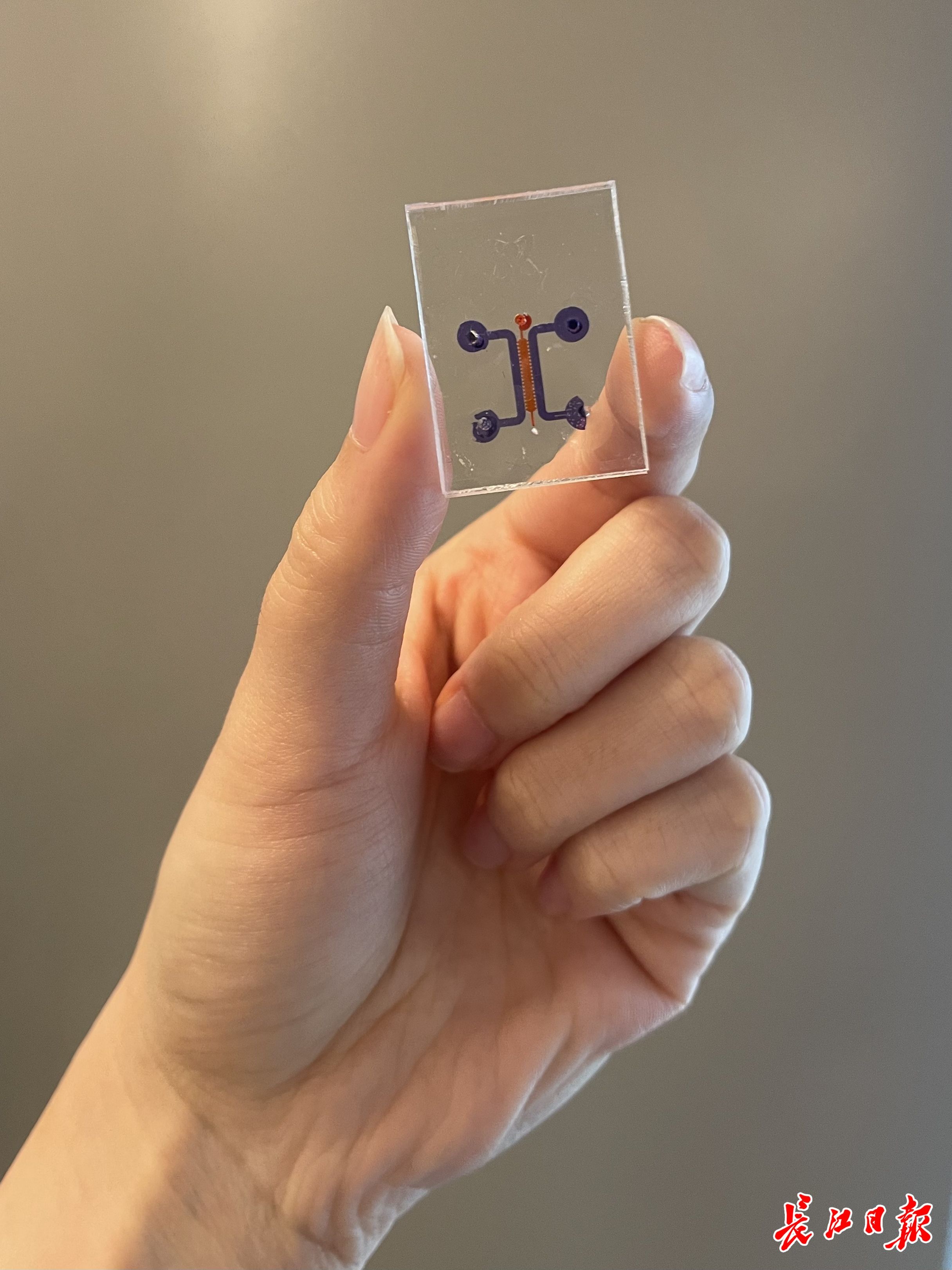 肿瘤芯片上,电路导线般的红色、蓝色通道清晰可见。记者陈智 摄
