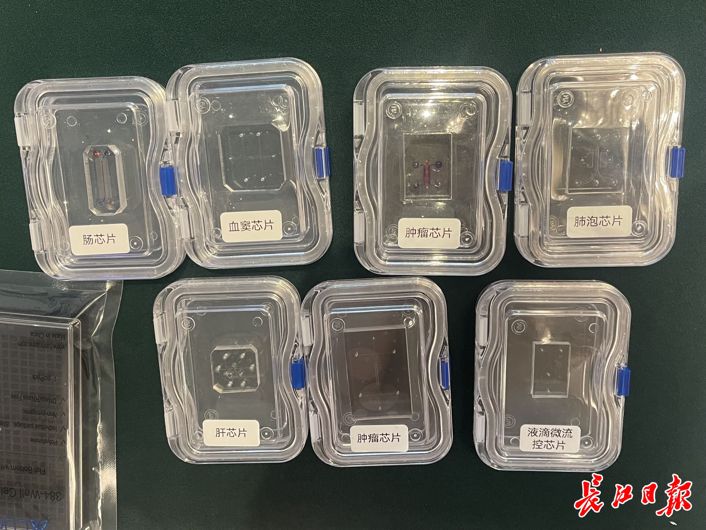 武汉骆华生物产品展示区展示的各种器官芯片。记者陈智 摄