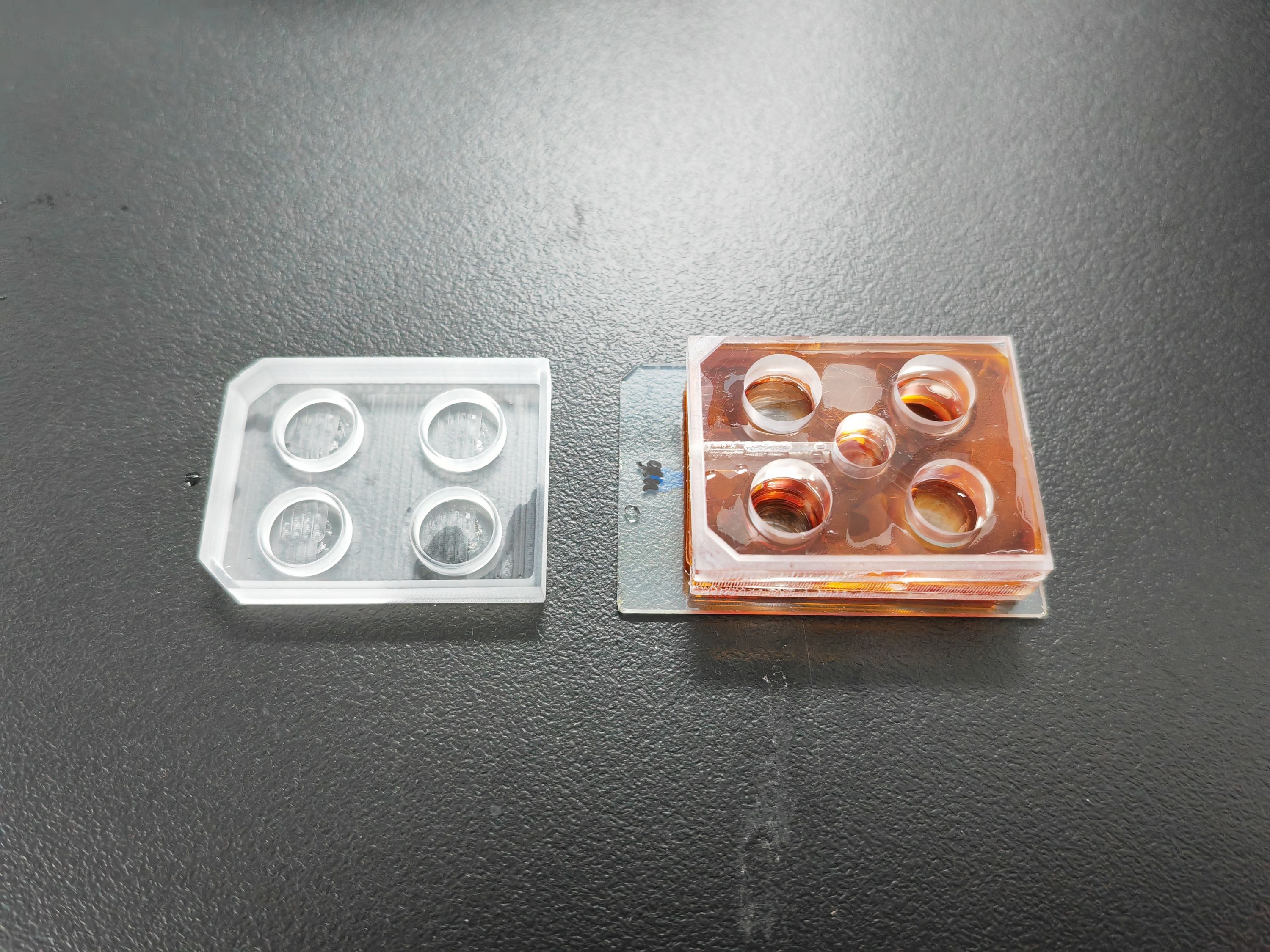 “红色通道用来灌注肿瘤细胞,蓝色通道为肿瘤细胞提供营养或用药处理。”武汉骆华生物科技有限公司总经理周宇介绍,“这个器官芯片看起来简单,却内有乾坤,配合微流控系统可以在体外模拟肿瘤生长的微环境。再比如肝芯片相当于在芯片上盖了‘三层楼’,每一层都有不同分工;皮肤芯片有‘六层楼’,能用于化妆品评价领域。”